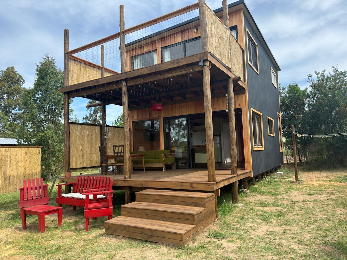 Huis boven. Accommodatie in een prachtige natuurlijke omgeving waar de energie van de zee en het platteland wordt gecombineerd. Uitstekende plek voor een ontspannen rust. Uitzicht op het platteland en Cerro del Toro. 600 meter van het strand. Slaapkamer: bed met twee zitplaatsen Woonkamer eetkamer met slaapbank voor 2 personen. Keuken geïntegreerd in de woonkamer met hoogwaardig fornuis. Buiten: terras met grillplank