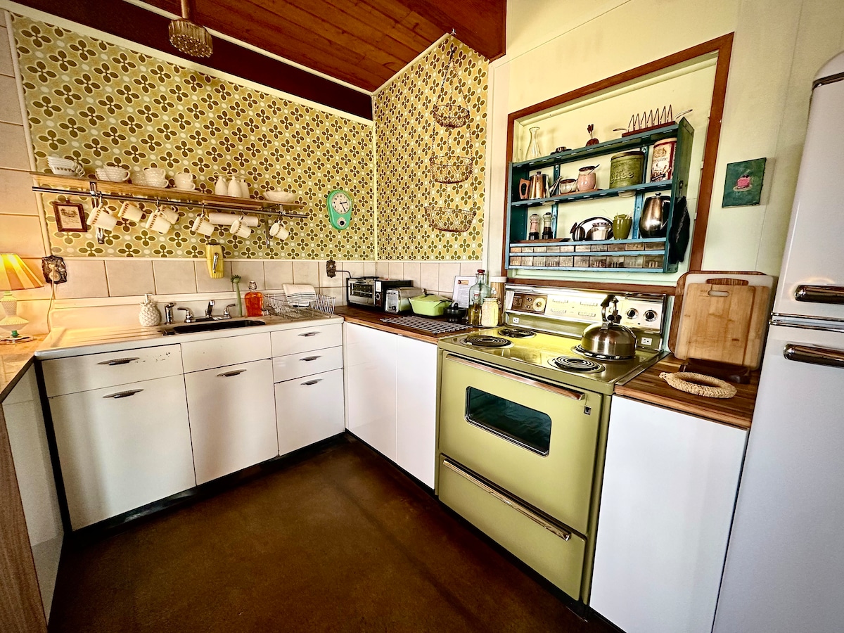 Woestijnvibes met een twist! Een moderne woonkamer uit het midden van de eeuw, een volledig gevulde open keuken en een dromerige slaapkamer met een wastafel, een lichte badkamer met een regendouche, een leuke veranda lounge om onze prachtige zonsopgangen te bekijken. Maar de magie komt echt naar buiten. Gril het diner en geniet onder de pergola, geniet in het vintage bad onder de bomen of geniet van de zonsondergang vanaf onze 'boot' in de woestijn, ja, een echte boot werd ligbed! Je wordt omgeven door Joshua-bomen en een hemel vol sterren.