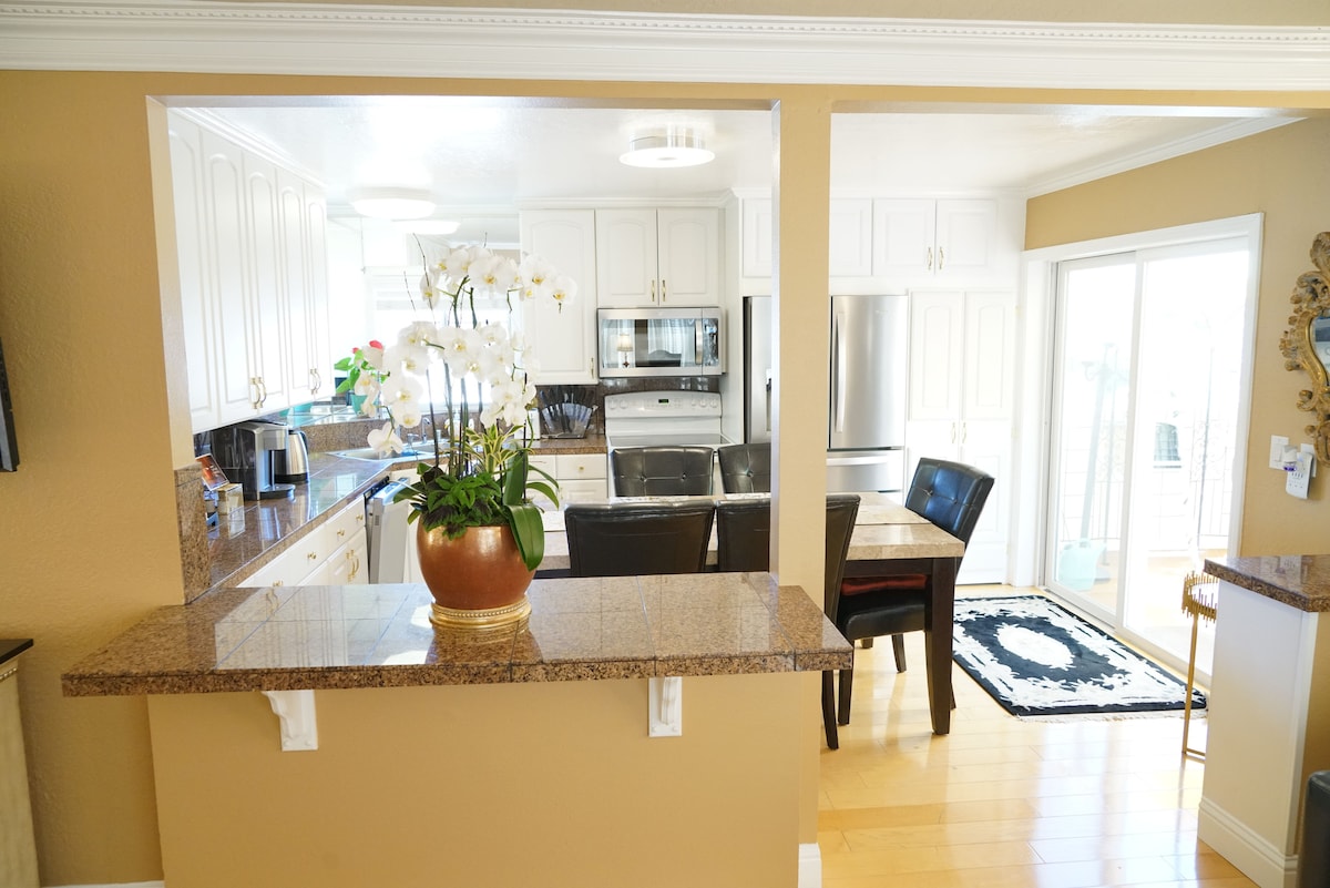 Mooie volledig ingerichte woning met prachtig uitzicht op de baai. Gelegen in het hartje Silicon Valley - op 15-20 minuten rijden van SFO. Bedden en beddengoed zijn nieuw en heel comfortabel. Keuken bevat nieuwe roestvrijstalen apparaten. Het huis ligt op loopafstand van hooggewaardeerde restaurants en winkels in het centrum en naar het Caltrain-station met service naar San Francisco en Silicon Valley. Het is de perfecte plek voor familiebezoek, zakenreis en teamretraite.