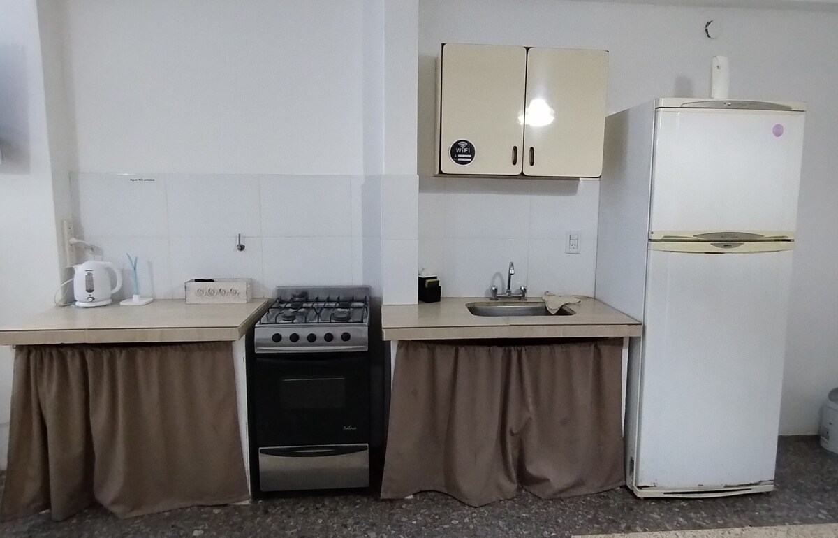 Ons complex bestaat uit twee zelfstandige appartementen, ideaal voor gezinnen of vrienden, met een totale capaciteit van 6/7 personen, waar je kunt genieten van privacy en tegelijkertijd kunt profiteren van gemeenschappelijke ruimtes zoals het zwembad, het prieeltje en de groene ruimte. Elk appartement heeft 1 tweepersoonsbed en 1 tweepersoonsslaapbank. Het complex is gelegen in de woonwijk Paseo del Bosque, op 200 meter van het winkelcentrum en op 500 meter van de rustigste stranden van Santa Teresita