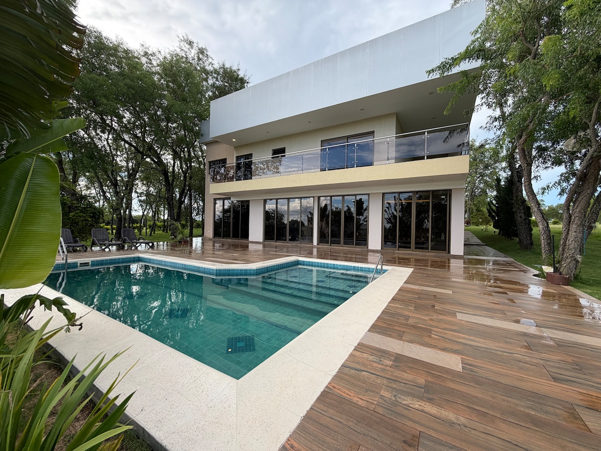 Lujosa residencia en el condominio Agua Vista, San Juan del Paraná, a solo 15 km de Encarnación. Un entorno exclusivo para relajarse, tener confort y privacidad. Cuenta con 3 suites con camas King Size, 1 suite de servicio, 6 baños (2 sociales), cocina equipada con amenities premium, sala y comedor integrados, quincho con parrilla, piscina privada y garage cerrado. Todos los ambientes están climatizados. Incluye acceso a áreas comunes del club: playa, canchas, spa, etc. Consultar condiciones.