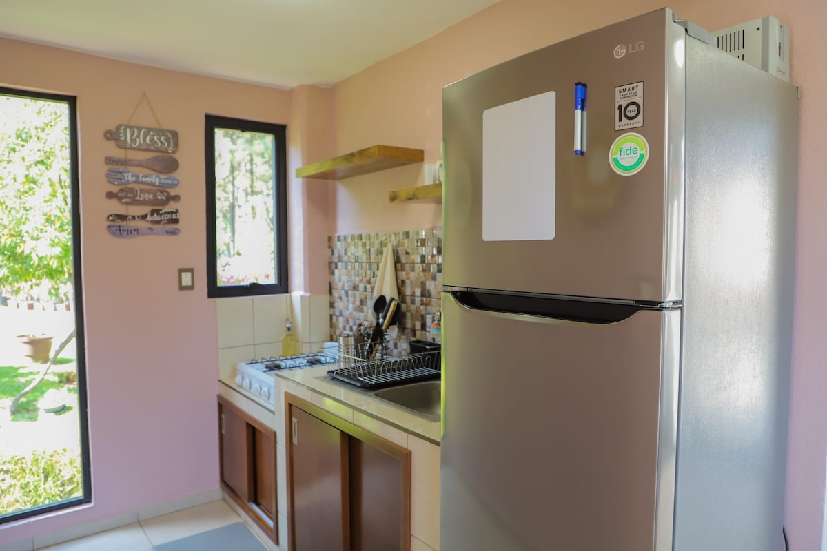 Ontsnap naar het bos zonder in te boeten aan comfort. Deze woning omgeven door de natuur is ideaal voor reizigers die op zoek zijn naar rust, comfort en de ideale plek om buitenmomenten te delen. Perfect voor maximaal vier personen, het heeft een volledig uitgeruste keuken, ontbijtbar, complete badkamer en een groot overdekt terras met grill, eetkamer en woonkamer. We hebben ook satellietinternet om altijd verbonden te zijn. Wij zijn "ValZur Hospedaje". Zo vind je ons!