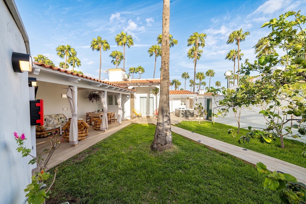 Let op: zwembad gesloten 17-02-2026 – 30-03-2026 - 15% korting al toegepast. Welkom in Privé Paradise, een charmant toevluchtsoord in hartje Maspalomas. Deze ruimte is ontworpen om privacy, rust en verbinding met de natuur te bieden en is perfect voor koppels, gezinnen of vriendengroepen die willen ontspannen in een gezellige en exclusieve omgeving. Met een eigen tuin, spa met jacuzzi en sauna, en zorgvuldig uitgeruste gemeenschappelijke ruimtes, vind je hier alles voor een onvergetelijk verblijf.