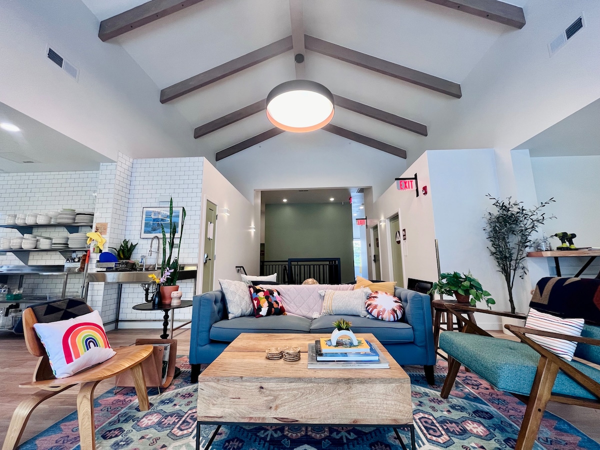 We hebben een karatestudio omgebouwd tot co-living in een prachtig deel van de stad! Een blok van Chestnut St winkelen/dineren op 1,5 km van het Paleis der Kunsten. PodShare Marina bestaat uit 16 aangepaste pods (4 queens & 12 tweelingen) allemaal in 1 grote slaapkamer. Onze open plattegrond verbindt de volledige 1e verdieping (de slaapkamer, keuken, toegankelijke badkamers en lobby). In de pods vinden onze gasten een persoonlijke tv, nachtlampje, opslagruimte en een trap naar de bovenste pods. Vergaderruimte + achtertuindek + wasserijunits!