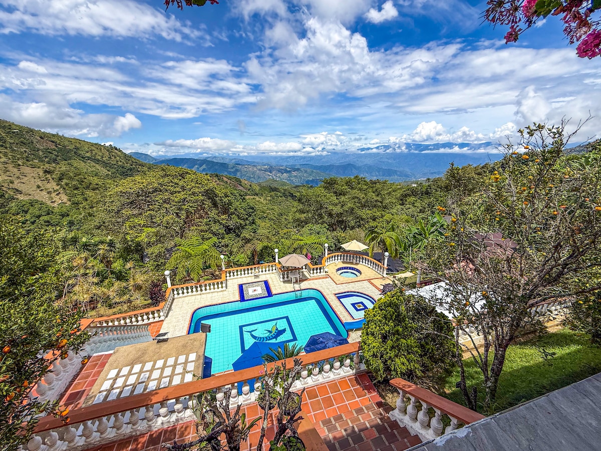Geniet van een ontspannen ervaring in de natuur, op slechts 50 minuten van Medellín. Landhuis op 4 minuten van Parque de San Jerónimo, prachtige ecologische paden die je naar natuurlijke poelen leiden en plaatsen om te genieten van de prachtige landschappen van het westen van Antioqueño. Dicht bij toeristische plekken, markten, restaurants, bankcorrespondent. Het huisje heeft wifi, 4 slaapkamers, woonkamer, eetkamer, 3 badkamers met douche, keuken, woonkamer, eigen parkeerplaats, terras, barbecue.