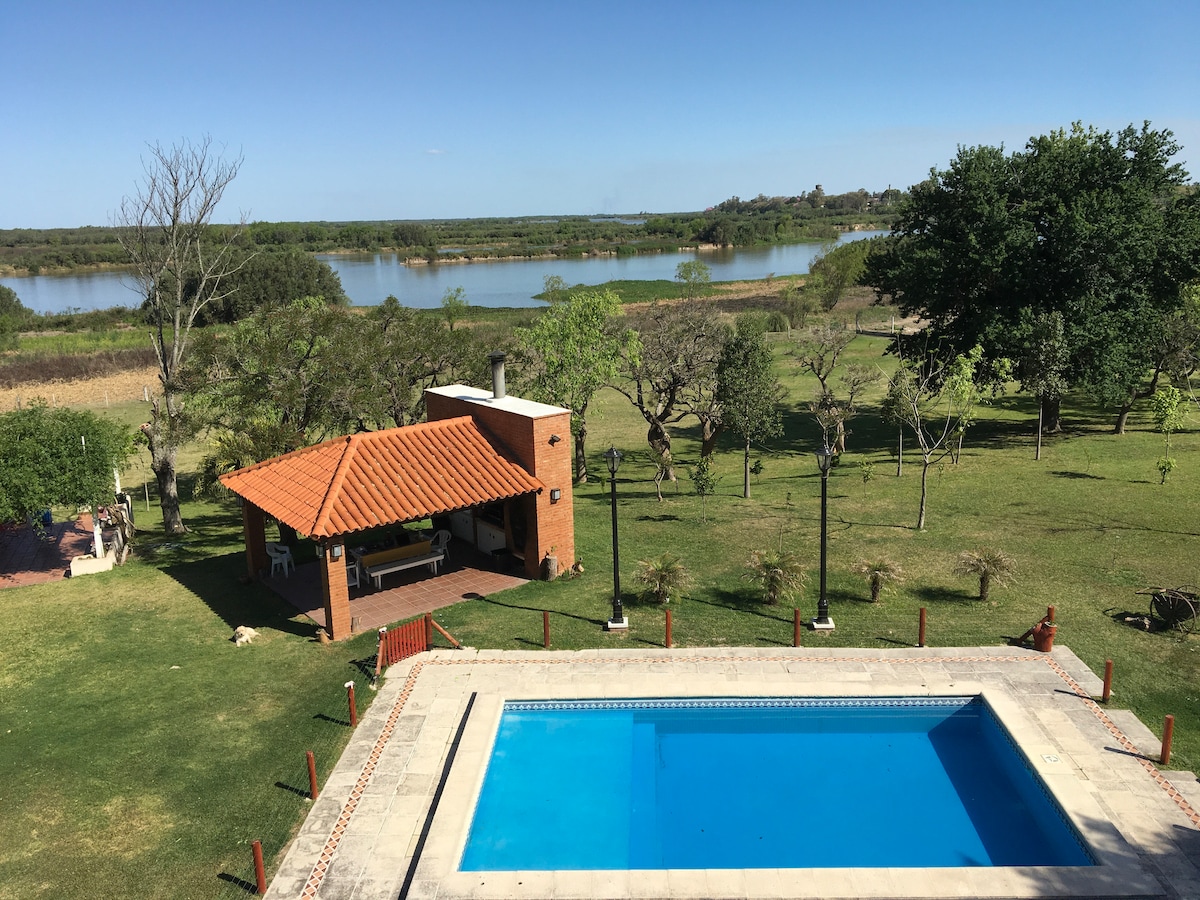 Neem het hele gezin mee naar deze magische plek! Aan de oevers van de Carcaraña-rivier in een natuurlijke omgeving omgeven door kunstmatige meren, paden van oude bomen, een rustige plek weg van het lawaai van de stad!