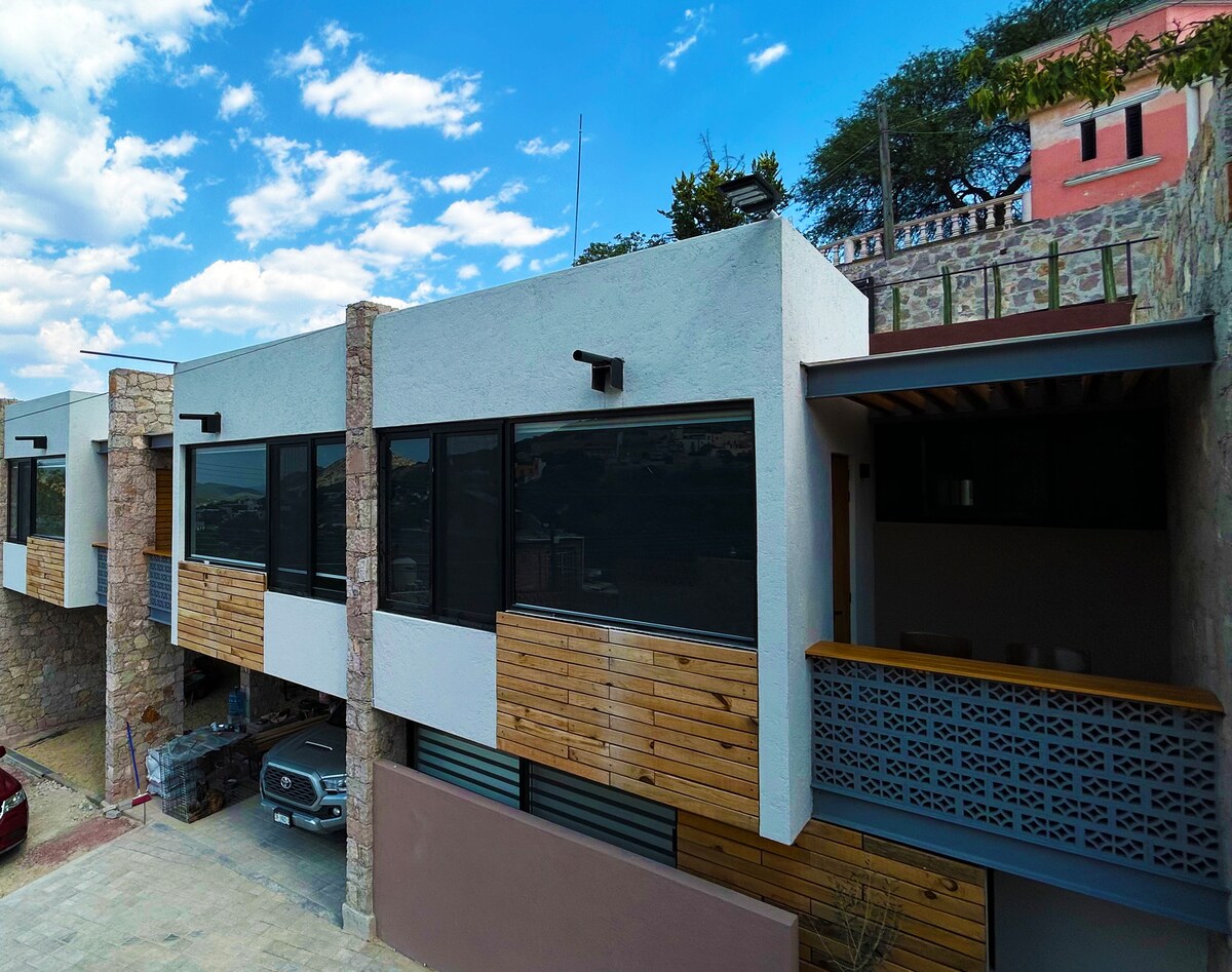 De beste plek om te verblijven in het magische dorp Bernal is ons prachtige appartement met twee slaapkamers. Het heeft een minimalistisch ontwerp dat de materialen en flora van de regio combineert om een aangename sfeer te bereiken die altijd zal worden omlijst door de Peña de Bernal, omdat het gericht was op het beste uitzicht op de monoliet. We zijn in het centrum van de stad, het is perfect om te wandelen. We hebben te allen tijde bewaking en het beste terras.
