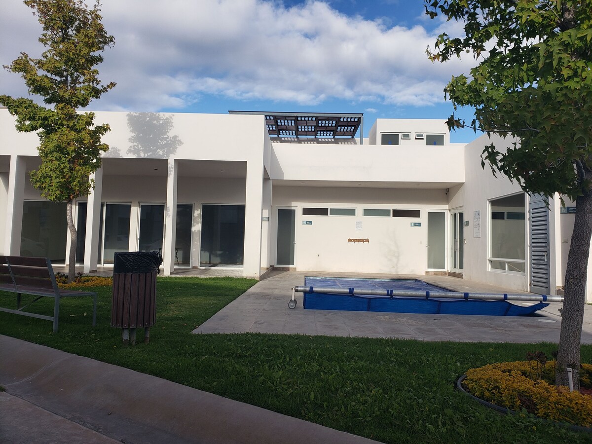 In privé, San Luis Potos wells 24/7 bewaking ruim huis, 2 kamers met elk een wandelkast, badkamer met jacuzzi. Master met balkon, woonkamer, eetkamer, keuken. studio met complete badkamer en kast, terras, voorraadkast wasruimte, parkeren. Gemeenschappelijke ruimtes, zwembad en een fitnessruimte. Alles wat ze nodig hebben is van jou! ideaal voor leidinggevenden die naar het industriegebied komen. inclusief internet, Netflix, gezuiverd water de hele tijd we spreken Spaans, Engels, Duits.