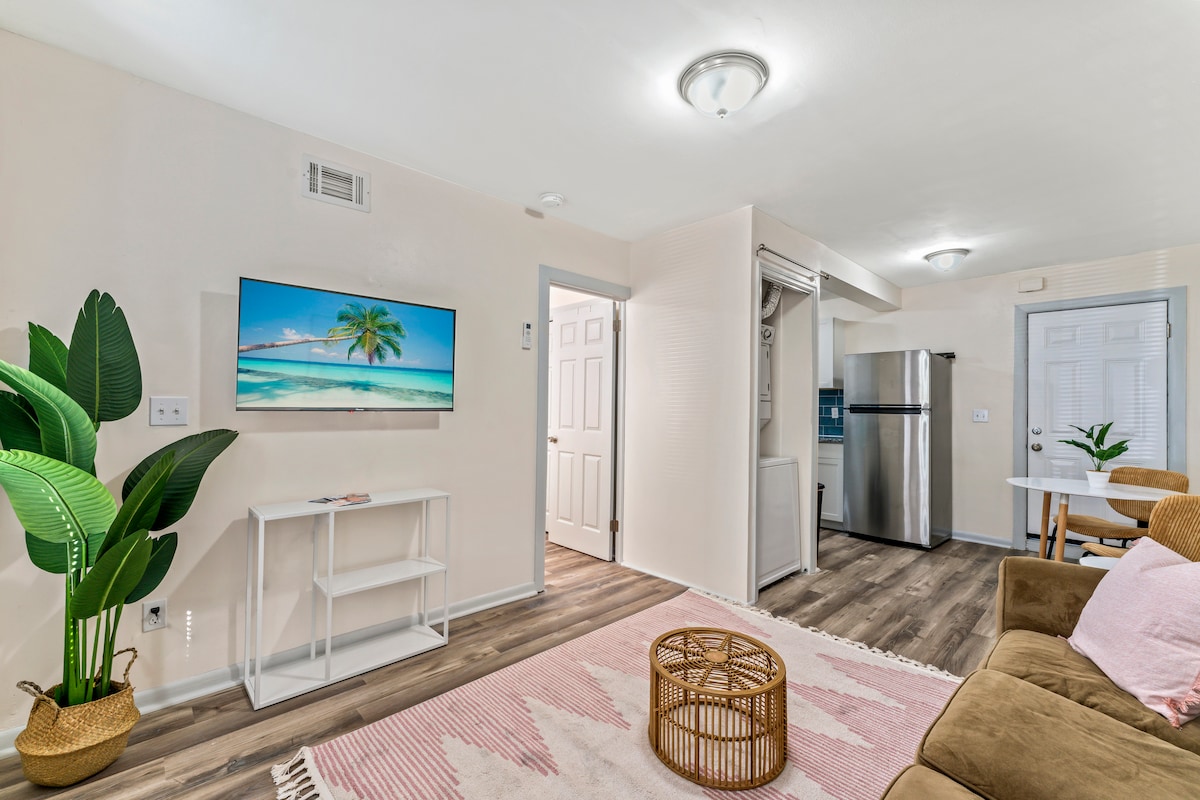 Welkom thuis in je thuis weg van huis! 2 slaapkamers/6 slaapplaatsen, 9 minuten naar het stadion, 5 minuten naar Baptist/Wolfson Children 's/MD Anderson ziekenhuis, 8 minuten naar Memorial Hospital, 9 minuten naar St. Vincent' s Hospital, 3 minuten naar San Marco Square, 24 minuten naar Jax Beaches. Deze designwoning met ruime hoge plafonds is voorzien van alle details, waaronder een Ninja blender, Airfryer en Insta pot. Geniet van ontspanning in het prieel in de rustige achtertuin en grillen.