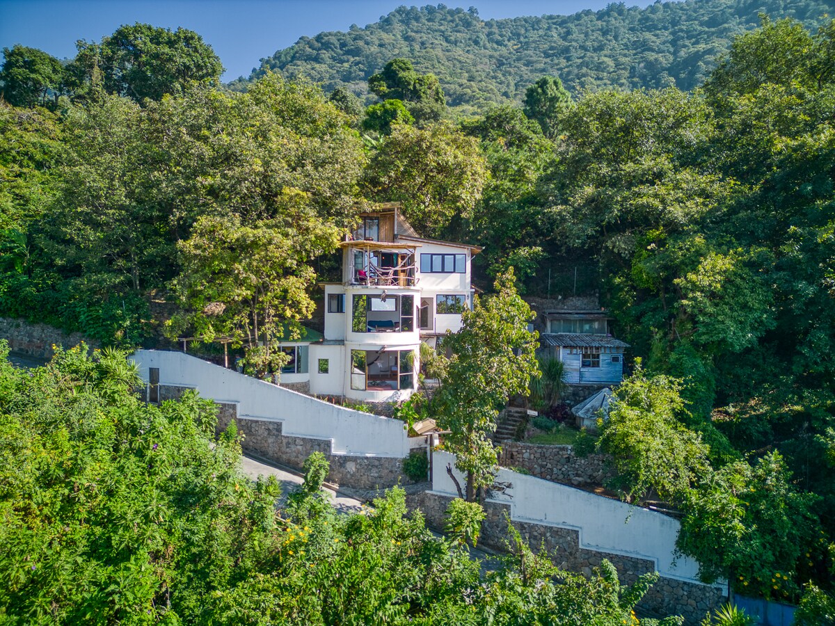 Geniet van een adembenemend panoramisch uitzicht op het meer van Atitlán, de omliggende vulkanen en de bergen vanuit je ambachtelijk ontworpen toevluchtsoord. Word wakker met epische zonsopgangen en vogels kijken terwijl je op de bank of een queensize orthopedisch matras ligt. Het huis is voorzien van een door de chef-kok ontworpen keuken, handgemaakte inrichting, wifi, 1,5 badkamers, een warme douche en gemakkelijke toegang tot wandelen en yoga. 7 Minuten lopen of een korte tuk-tukrit van het centrum van San Marcos. Ideaal voor stellen, creatievelingen, digitale nomaden en natuurliefhebbers.