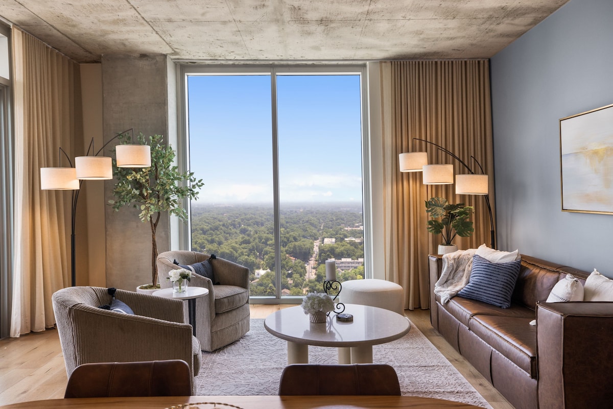 - Luxe zwembad in resortstijl op het dak met Cabanas aan het zwembad (33e verdieping) - Ongelooflijk uitzicht op de skyline van Austin - Buitenlounge op het dak en gasbrandputten (33e verdieping) - Terraslounge, clubkamer op het dak en co-werkruimte (33e verdieping) - Fitnesscentrum, yogalounge en eigen Peloton-studio 's (10e verdieping) - Koffiebar/co-workingruimte (1e verdieping) - Lobby lounge (1e verdieping) - EV-opladen en fietsenstalling - eigen balkon en een extra slaapbank in je appartement