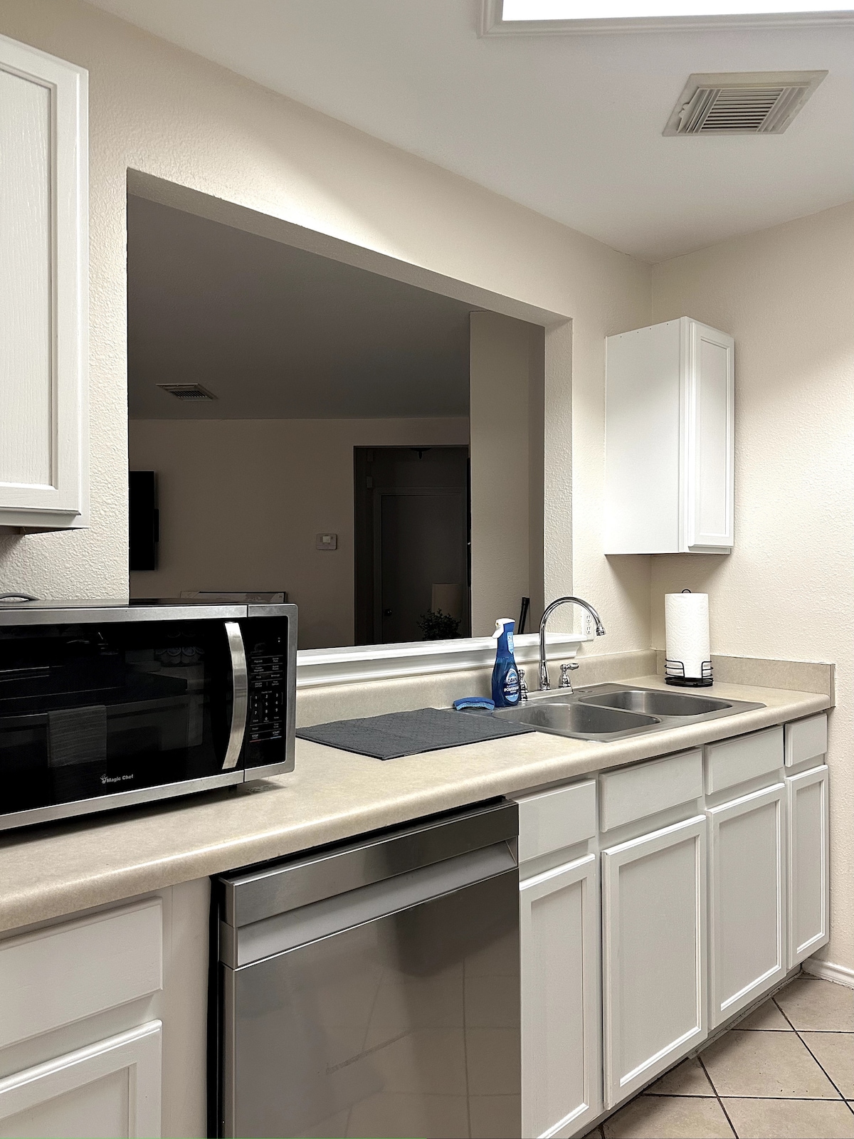 Welkom in dit prachtig gerenoveerde, ontspannende thuis weg van huis Central Texas open concept retraite. Een volledig ingerichte keuken voor familie dineren en bakken is tot uw beschikking. De buitenruimte is ideaal om te grillen en te ontspannen op het schaduwrijke terras in een met bomen omzoomde achtertuin. Een assortiment buitenspellen beschikbaar. Twee slaapkamers hebben queensize bedden, de andere heeft 2 eenpersoonsbedden, een Ashley Furniture slaapbank met queensize traagschuimmatras. De mastersuite heeft een speciale werkplek.