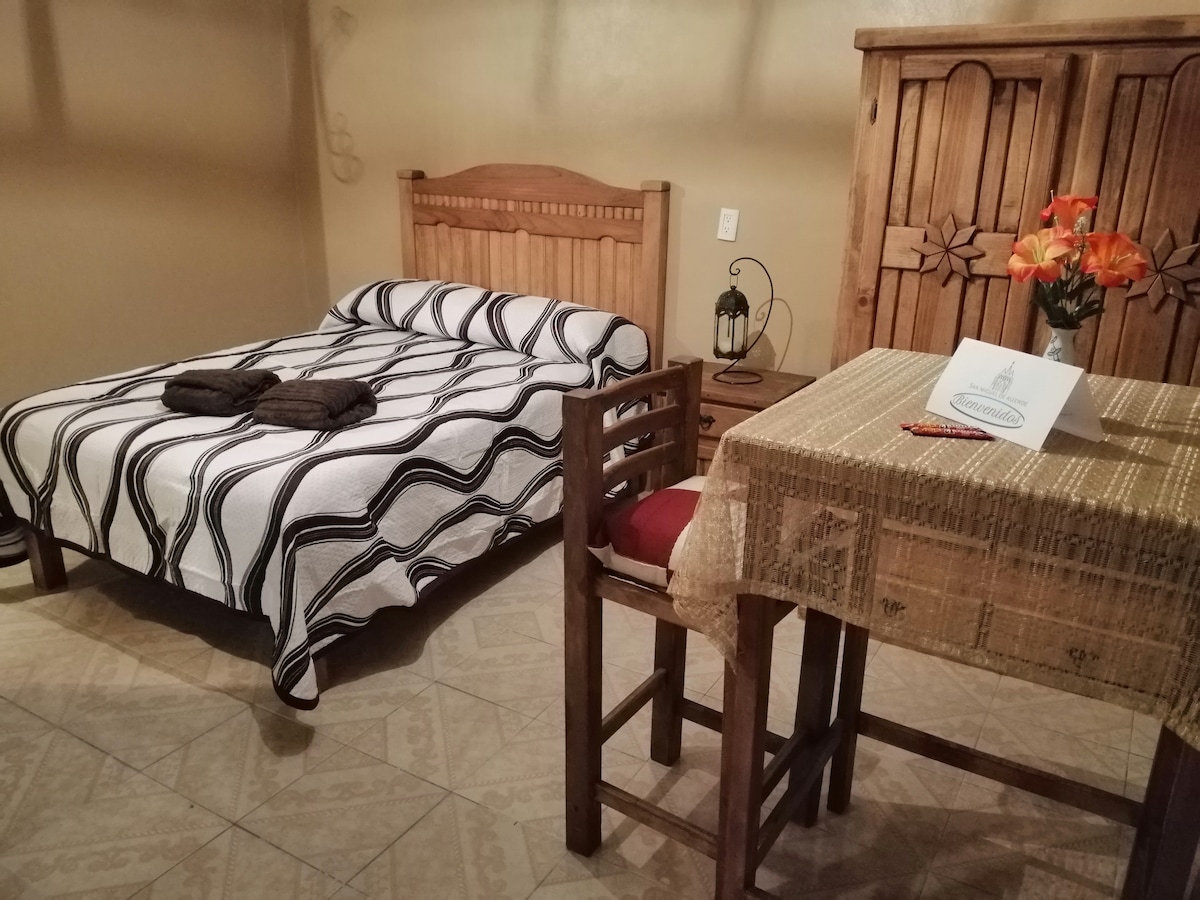Een slaapkamer adobe huis met een keuken, badkamer, woonkamer met een bank, chimeny en een eigen terras. Onze gasten kunnen gemeenschappelijke ruimtes gebruiken als een palapa, een grote keuken en een eettafel in de buitenlucht. Op hetzelfde terrein bevinden zich nog twee gebouwen met een slaapkamer en een privébadkamer. Er is veel ruimte om te wandelen, te lezen of yoga te doen.