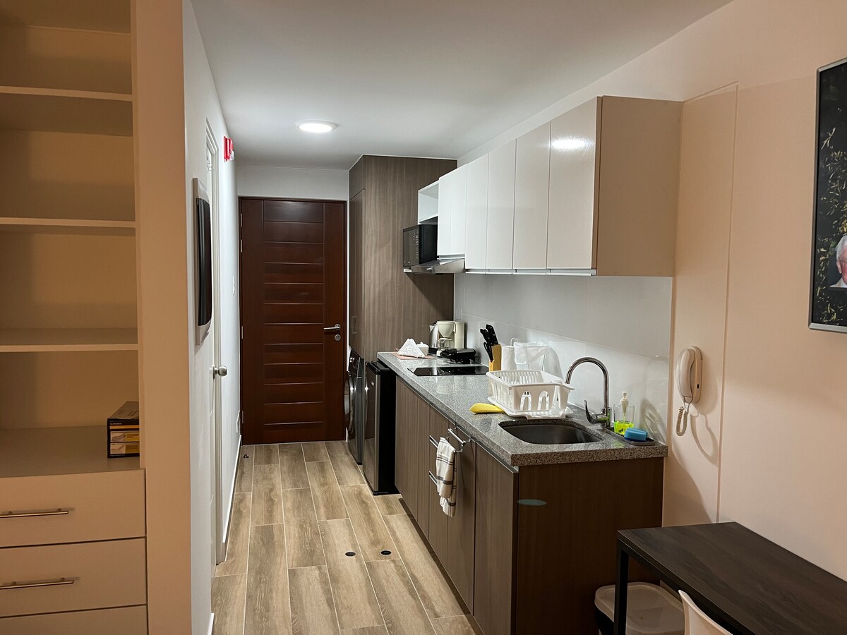 Modern fully furnished apartment, ideal for long stays. Features high-speed Wi-Fi, a 65” Smart TV with Netflix and Disney+, a fully equipped kitchen with espresso machine and water filter, washer-dryer, queen-size bed, and a balcony. The building offers a swimming pool, gym, and coworking area. 24/7 self check-in, smartkey, free parking, and 24-hour security. Strategically located in San Miguel, close to universities and shopping centers, and less than 20 minutes from the airport.