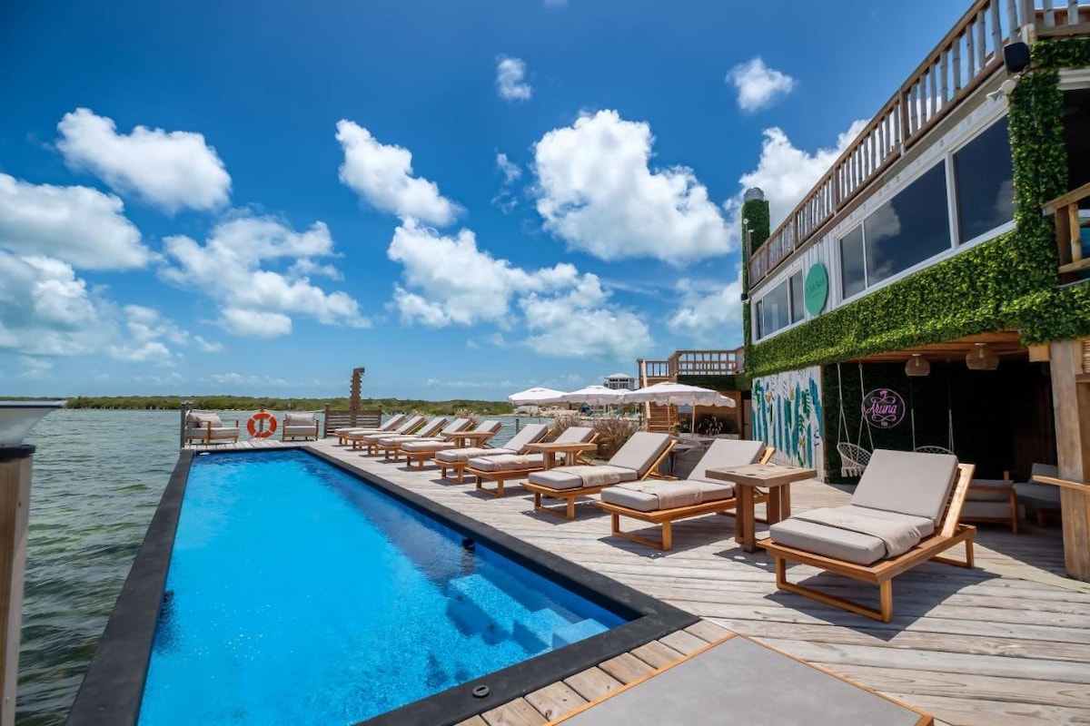 Verblijf bij de enige grote boetiekcabana-ervaring in Ambergris Caye! Pur Boutique Cabanas biedt een moderne maar vintage, rustiek-luxe ervaring, met een Taco Bar & swim up pool bar, in de BESTE buurt in Ambergris Caye, een mijl ten noorden van de brug. Wij bieden voorzieningen van een boetiekhotel, waaronder gratis ophalen van de luchthaven of watertaxi (een retour), gratis koffie en water, badjassen, strandhanddoeken, conciërge ter plaatse, gratis fietsen, welkomstdrankje, kingsize eenheden en nog veel meer!