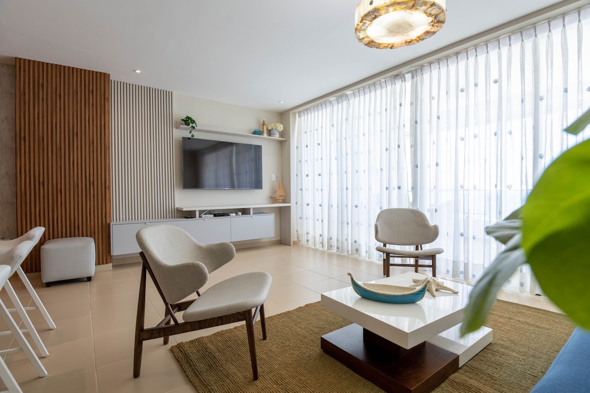 Mooi en ruim appartement met 2 slaapkamers volledig uitgerust om je de beste ervaring in Juan Dolio te geven, het heeft een gezellige kamer met spectaculair groot meubilair en 75inch televisie met geluidsapparatuur om van te genieten als een bioscoop van je favoriete films en series. Het heeft ook high-end Amerikaanse matrassen die zorgen voor een goede rust. Het is gelegen vanaf het strand op 2 minuten lopen. We hebben een verscheidenheid aan 8 bordspellen.