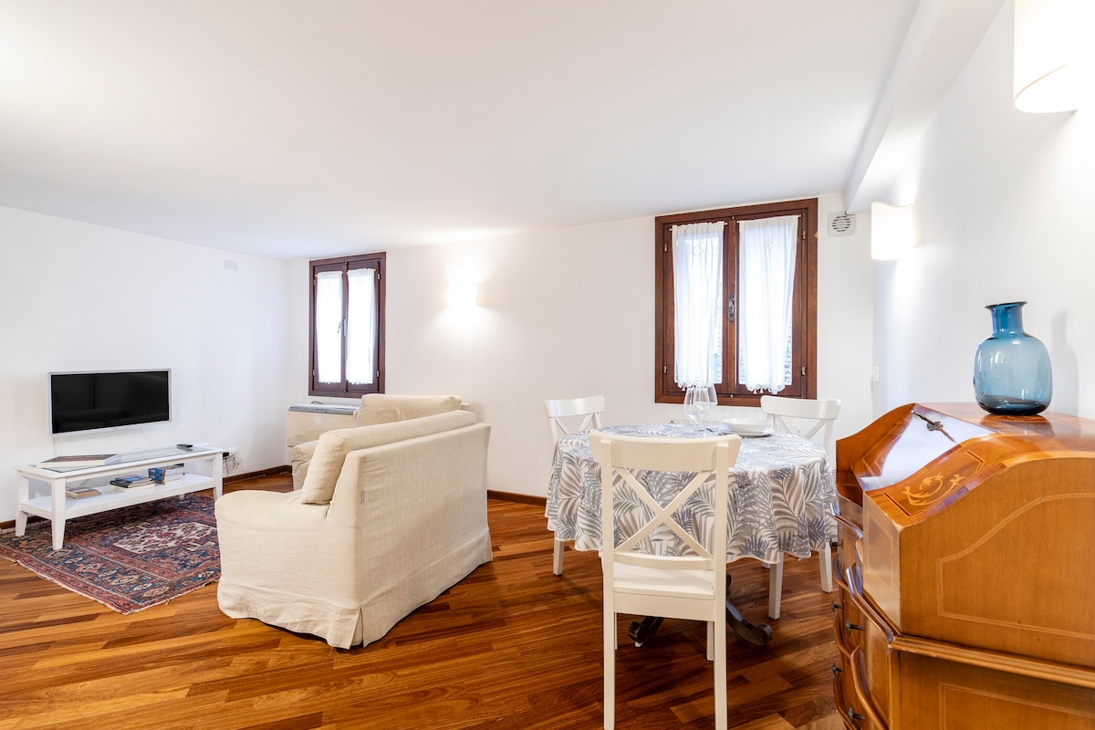 UITZICHT OP HET KANAAL NIET TE MISSEN 👍 Het prachtige uitzicht op de gracht zal je verblijf echt uniek maken. Ruim en licht appartement gelegen in het hart van Venetië, perfect om de stad als een echte Venetiaan te ervaren. Elegante afwerkingen, een grote woonkamer en een volledig uitgeruste keuken bieden comfort en ruimte. Verse groente- en fruitmarkten en een supermarkt liggen op loopafstand. Ideaal ook voor langere verblijven, met een bank en een speciale werkruimte.