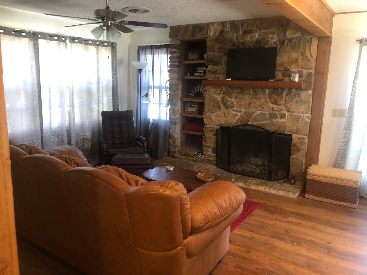 De Bogard is een rustige plek genesteld in de prachtige eiken- en iepenbomen en liefdevol vernoemd naar een van onze eigen San Saba-vrouwen, Hazel 'Tottsie' Bogard. Het is ons doel om een plek te bieden waar je je thuis kunt voelen en waar je graag nog eens naar kunt kijken! Geniet van de onlangs gerenoveerde woning met je familie, vrienden of collega 's terwijl je de hoofdstad van Pecan of het omliggende platteland bezoekt. We hebben onze tarieven gemakkelijker gemaakt, inclusief schoonmaakkosten en hogere kortingen voor langere verblijven.