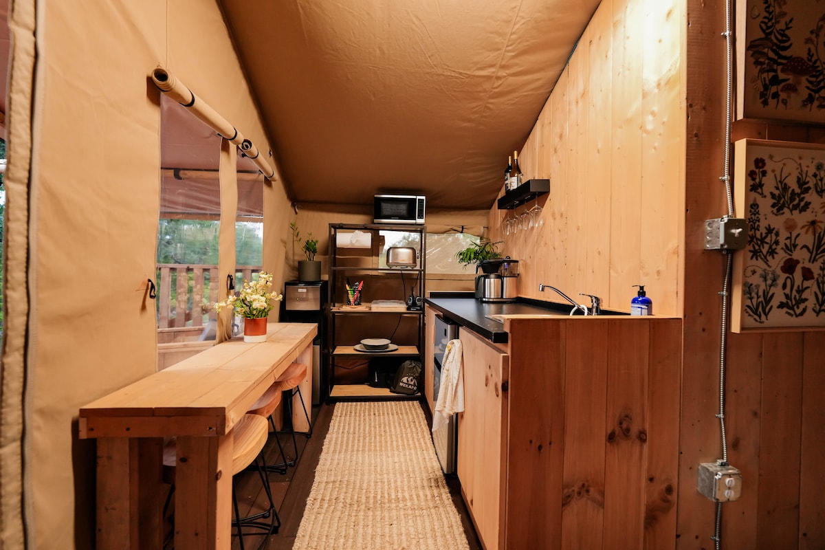 Get back to nature in our one room cabin with lots of comfort. Located next to the famous Regency Bridge the States last functioning swinging bridge. There is a small private RV park nearby that rents out an small camper which would allow you to have more guests come and stay next door. The river is on the property with steps down to the water perfect for kayaking or fishing. When the water level is down hiking the river bed is a great time. We do have 2 paddle boards available to rent as well.