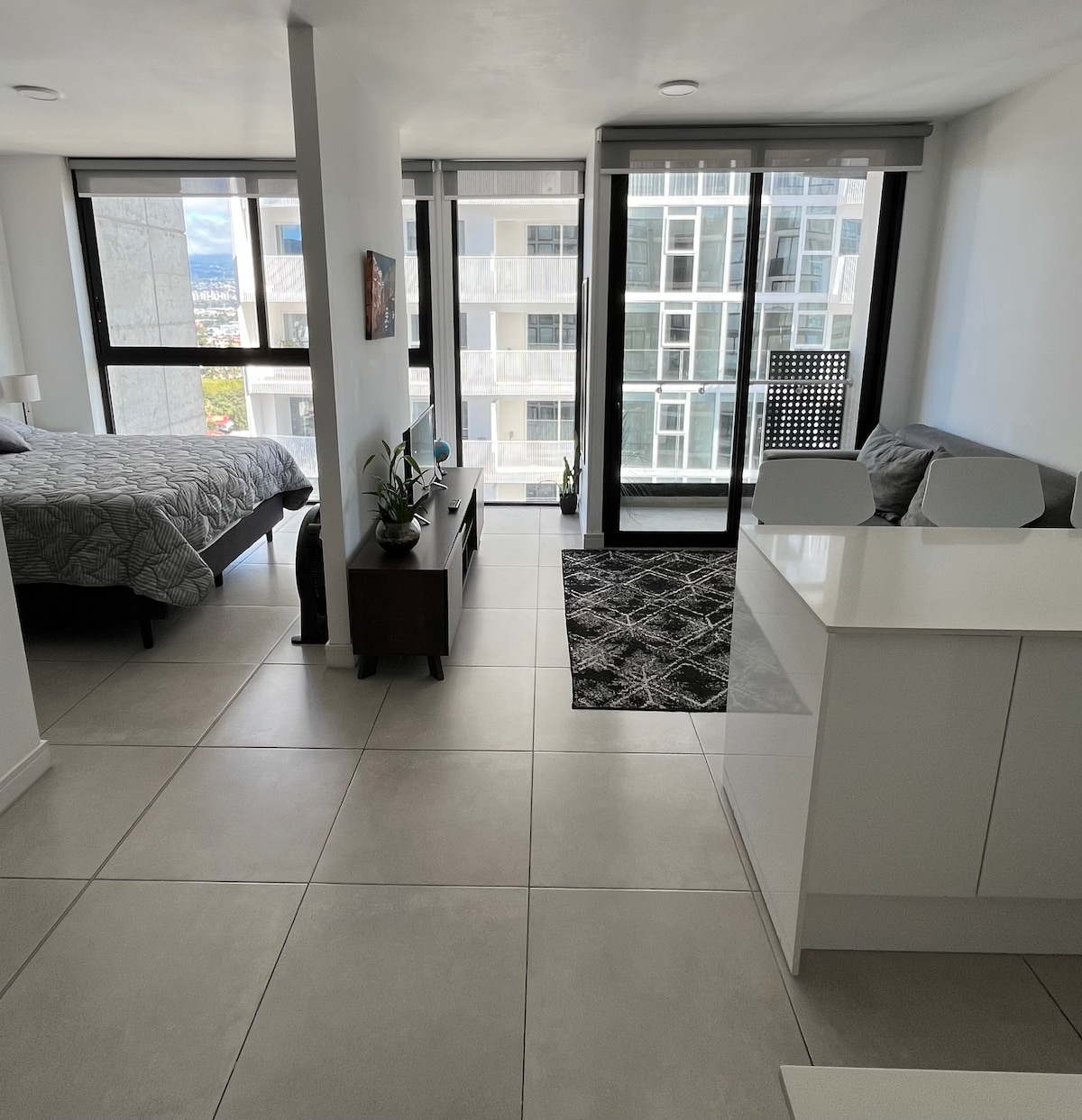 Welkom in onze charmante studio! Deze ruimte is ontworpen zodat je je thuis voelt vanaf het moment dat je binnenkomt. Met zijn open indeling en prachtige ramen met dubbele hoogte kun je de hele dag door genieten van spectaculair natuurlijk licht en een onvergetelijk uitzicht op de bergen en de stad. Stel je voor dat je elke ochtend wakker wordt met de frisse bries en een veranderend landschap: van de eerste zonnestralen die de bergen verlichten tot de stadslichten twinkelen in de schemering.