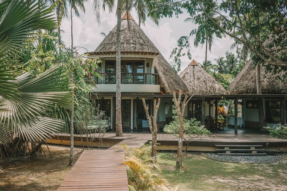 De villa ligt midden in het bos, aan de voorkant van een prachtig strand en op een steenworp afstand van de wereldberoemde Palawan Subterranean River. Een plek voor gezinnen, vrienden, geliefden, avontuurlijke mensen en diegenen die liever de rust van de natuur hebben. De villa is geschikt voor 12 personen en 2 baby 's (wiegjes tot je beschikking) in 3 grote kamers met airconditioning met kingsize bedden, 1 eenpersoonskamer en 1 zolder met 5 bedden voor groepen of kinderen. Huisdieren welkom. Frisse infinity pool mid-hill met geweldig uitzicht op het strand.