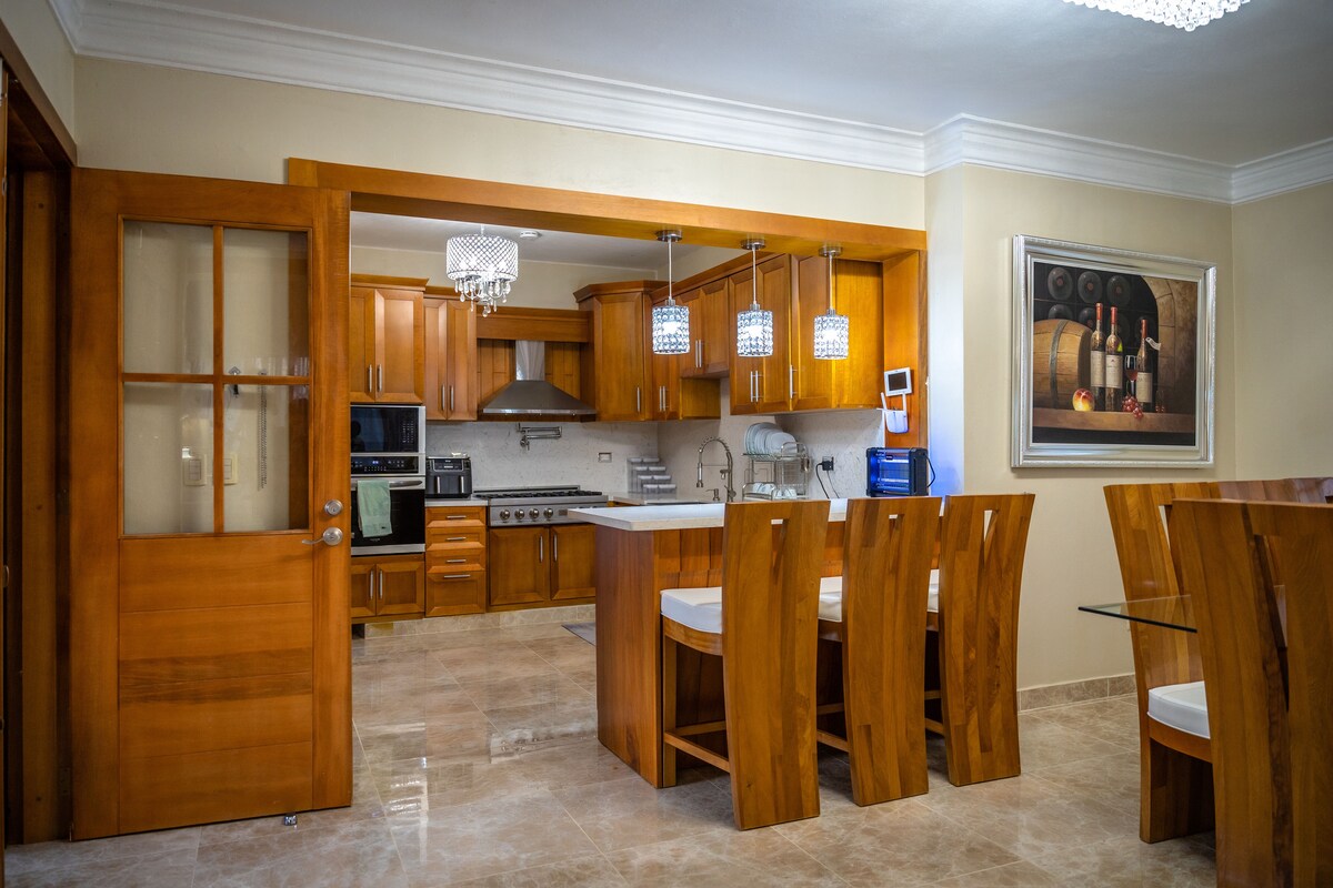 Modern Airbnb-appartement met één slaapkamer, zorgvuldig samengesteld en prachtig ingericht met een minimalistische ontwerpbenadering. Perfect voor een stel of enkele reizigers! Gelegen in het hart van de stad Santiago De Los Caballeros, Dominicaanse Republiek. Dicht bij het centrum van de stad: Monument, winkelcentra (Agora Mall), restaurants, bars, ziekenhuizen en winkels. Alles wat je nodig hebt ligt op minder dan vijf minuten afstand. Op 15 minuten rijden van de luchthaven STI.