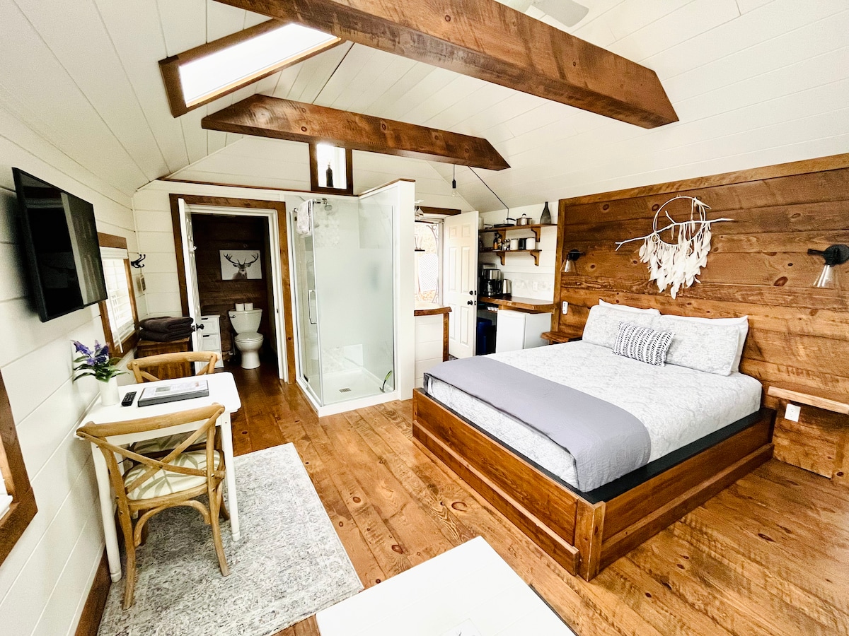 Genesteld in de dennen aan de rivier de Muskoka is dit gezellige huisje met één slaapkamer, ideaal voor een toevluchtsoord voor een stel. De Hudson biedt het beste van alle werelden: het is ontspannend, rustig en privé, maar je bent slechts 10 minuten rijden van de stad Bracebridge met unieke winkels, restaurants, boodschappen en brouwerijen, om nog maar te zwijgen van tal van toeristische attracties. Gemarkeerde paden zijn direct aan de overkant van de rivier. Voor meer foto 's en informatie bezoek ons op IG (at) thehudson.riversidecabin