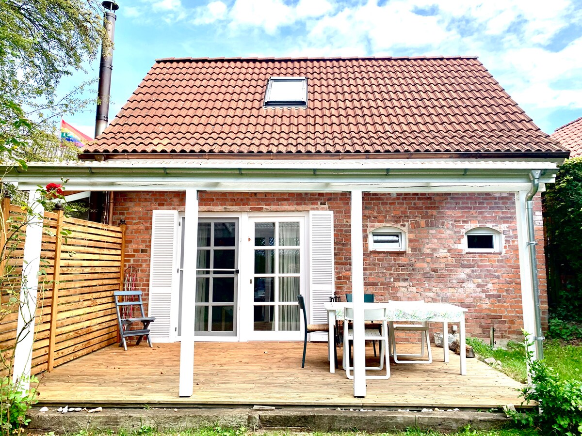 Welkom! Ons vriendelijke appartement is gelegen in een klein meer dan honderd jaar oud typisch Noord-Duits huisje onder oude bomen. Het is volledig uitgerust met: Fornuis/oven, vaatwasser, magnetron, koelkast. Gebruik van wasmachine op afspraak, kleine doucheruimte met raam, Overdekt terras met tuinmeubilair. De omgeving nodigt uit om te wandelen en Hamburg en Lübeck zijn in 40 minuten met de auto te bereiken. Het treinstation Bargteheide ligt op 5 km afstand.
