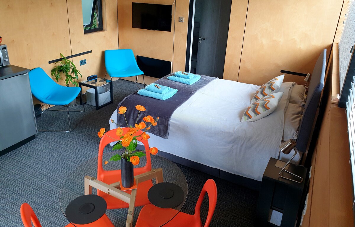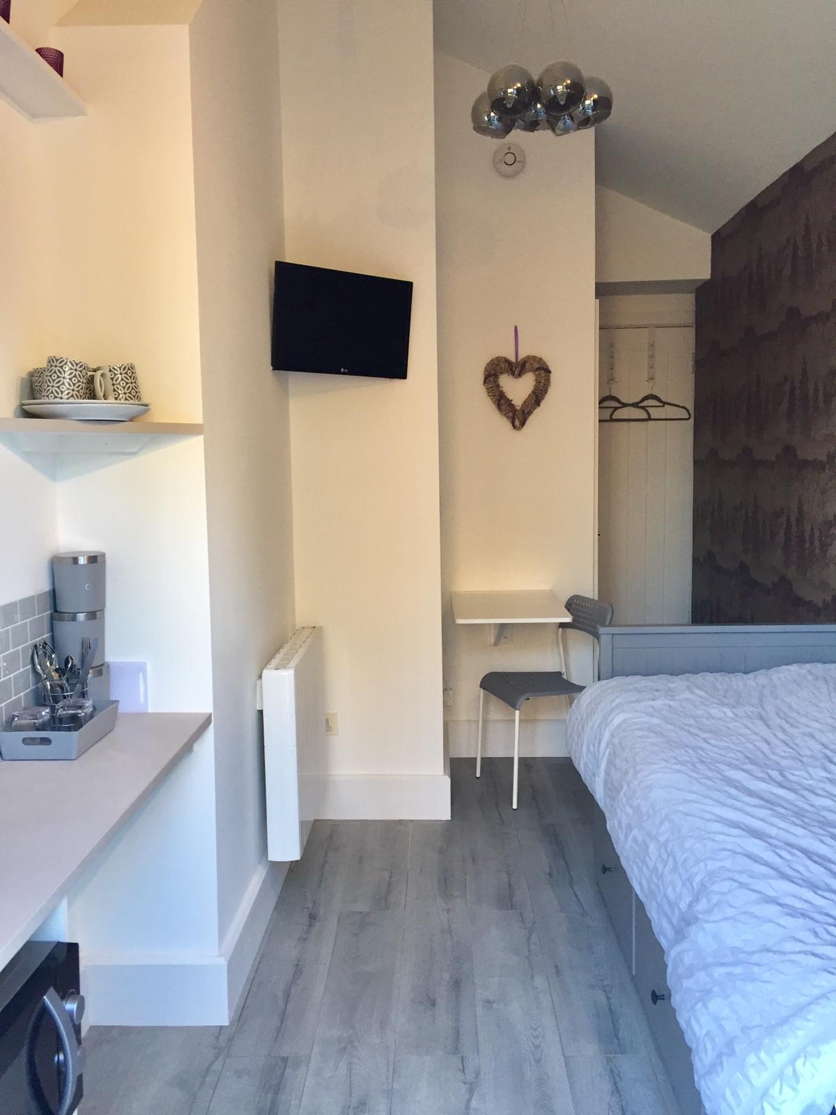 Eigentijdse studio, ensuite, gratis wifi en parkeergelegenheid.