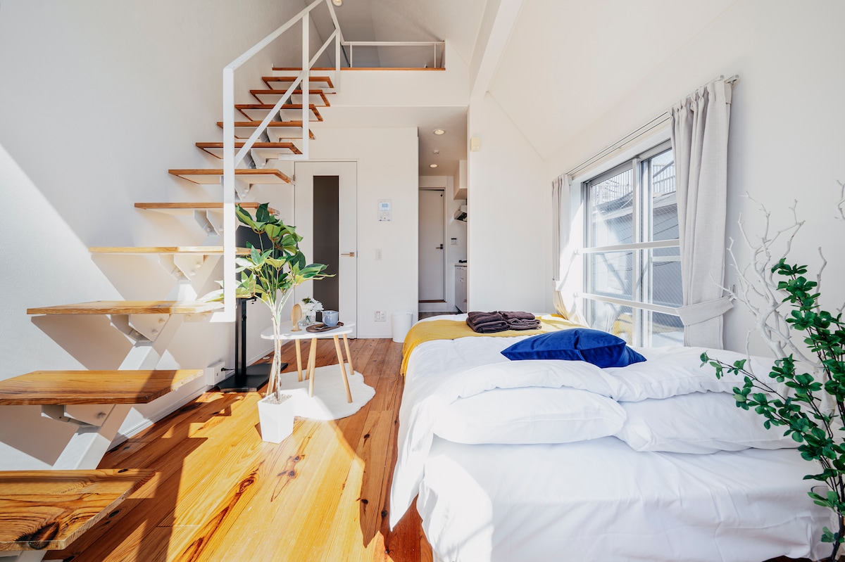We hebben een studio-appartement gerenoveerd in een van de populairste woonwijken van Tokio. Het dichtstbijzijnde station bij het appartement is Mitaka Station, vanwaar je Shinjuku Station in slechts 14 minuten zonder transfers kunt bereiken! De kamer is uitgerust met een mini-keuken en een wasmachine, en het is een minuut lopen naar de supermarkt. Aanbevolen voor langetermijnverblijven. In een rustige woonwijk kun je ontspannen en genieten van je verblijf terwijl je opgaat in het dagelijks leven van Tokio!