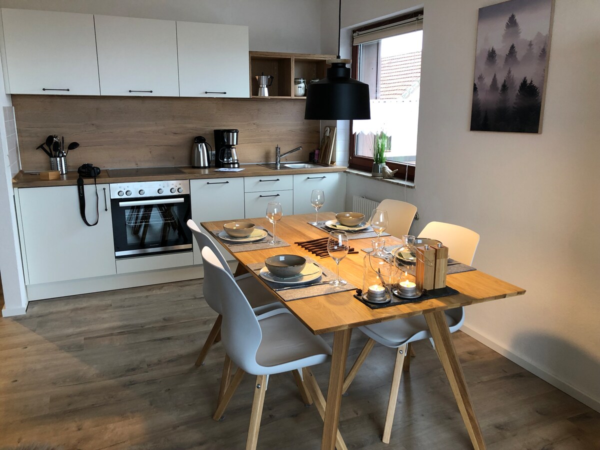 Welkom in ons vakantieappartement "Sicasa" in Schulenberg in het prachtige Harz. We hebben het appartement in 2024 na meer dan een jaar volledig gerenoveerd met veel liefde voor detail. Op 43 m2 kun je een moderne en lichte accommodatie verwachten, die overtuigt met zijn stijlvolle meubels en een fantastisch uitzicht. De minimalistische meubels met subtiele kleuren, veel daglicht en warme houten accenten zorgen voor een rustige sfeer om tot rust te komen.