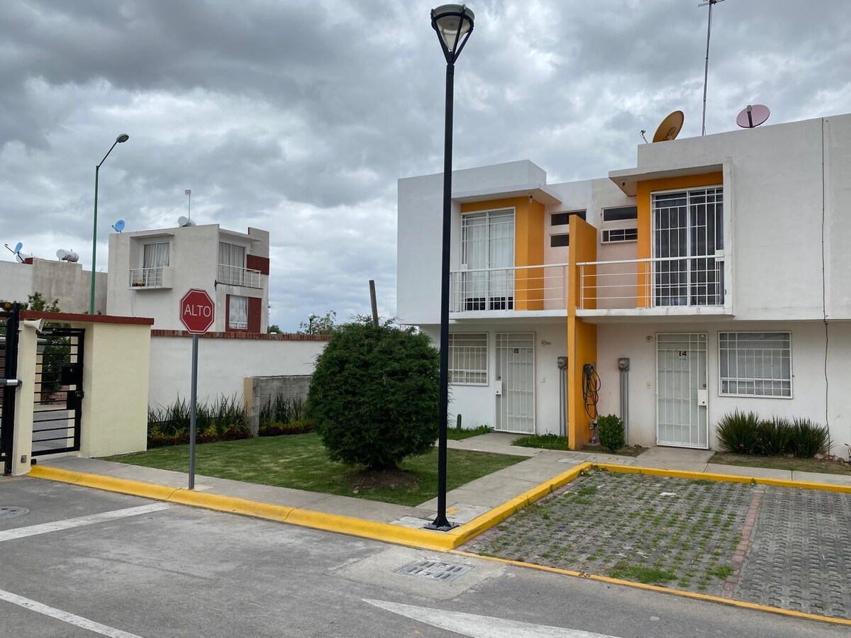Aangenaam appartement voor 4 personen in een omheinde gemeenschap in de buurt van AIFA (Felipe Ángeles International Airport), op 3 minuten van de afrit Mexico-Pachuca en op 15 minuten van de afrit Arco Norte. Het heeft alle basisvoorzieningen voor je comfort. Je vindt een Oxxo-winkel in de buurt, en allerlei diensten en restaurants buiten. Het appartement bevindt zich op de begane grond met een parkeerplaats aan de voorkant (met een beveiligingscamera). Vervoer van/naar AIFA is beschikbaar