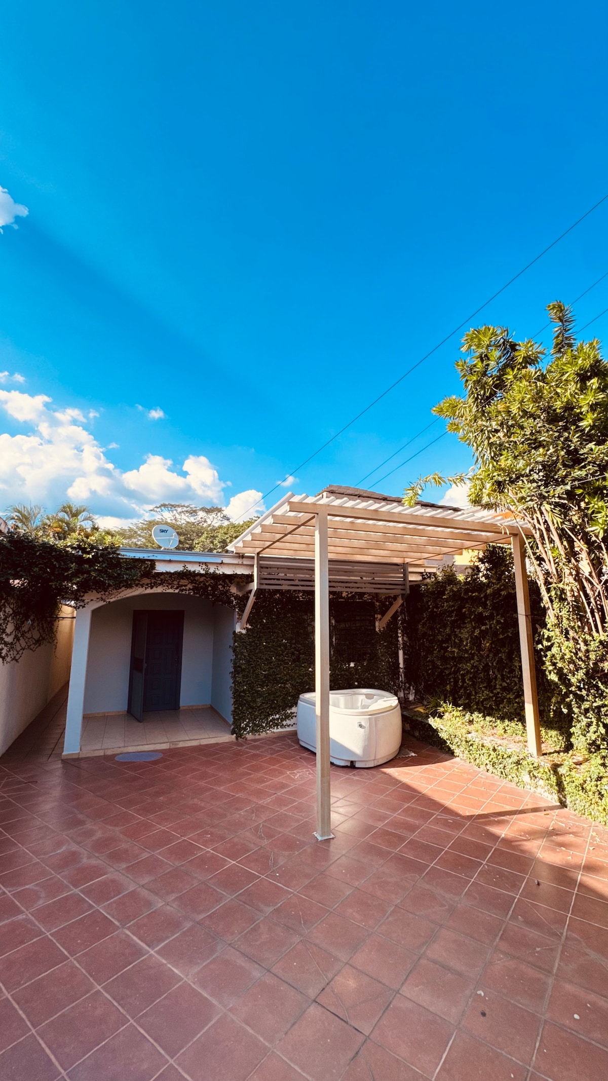La casa cuenta con parking privado gratis, piscina, jardín, kiosko y WiFi gratuita. La habitación dispone de Walking clóset, aire acondicionado, bañera y TV de pantalla plana con canales por cable y plataformas streaming. El baño incluye artículos de aseo. Se encuentra a 200 mts de la zona comercial, ubicación de fácil acceso a centros educativos, City Mall, Multiplaza, Hospitales, farmacias y restaurantes. Zona segura y céntrica con ambiente tranquilo para tu estadía.