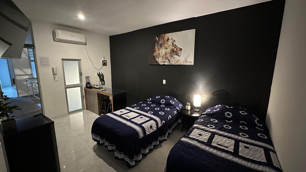 Klein appartement op een paar stappen van de Paseo Hidalgo, gezellig, rustig en centraal gelegen op een blok van de prachtige kathedraal van onze stad Tehuacán. Ideaal voor wie op zoek is naar een centrale accommodatie. Veiligheid, comfort, netheid en rust. Met alle voorzieningen. Appartement op de eerste verdieping. ER IS GEEN PARKEERGELEGENHEID BESCHIKBAAR. Inchecken kan tot 21.00 uur.