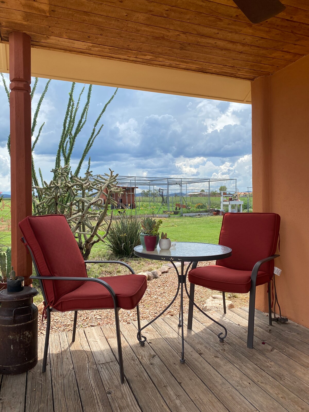 Je eigen casita met queensize bed en aangrenzende badkamer op 45 minuten ten zuiden van de internationale luchthaven Tucson, op slechts tien minuten lopen van het centrum van het charmante en historische dorp Tubac en op een steenworp afstand van het Anza-pad om te wandelen en vogels te spotten. Met aangrenzende patio voor exclusief gebruik en een eigen ingang is je casita het perfecte 'hoofdkantoor' voor je bezoek aan Zuid-Arizona of een geweldige plek om je 'overflow' -gasten te huisvesten!