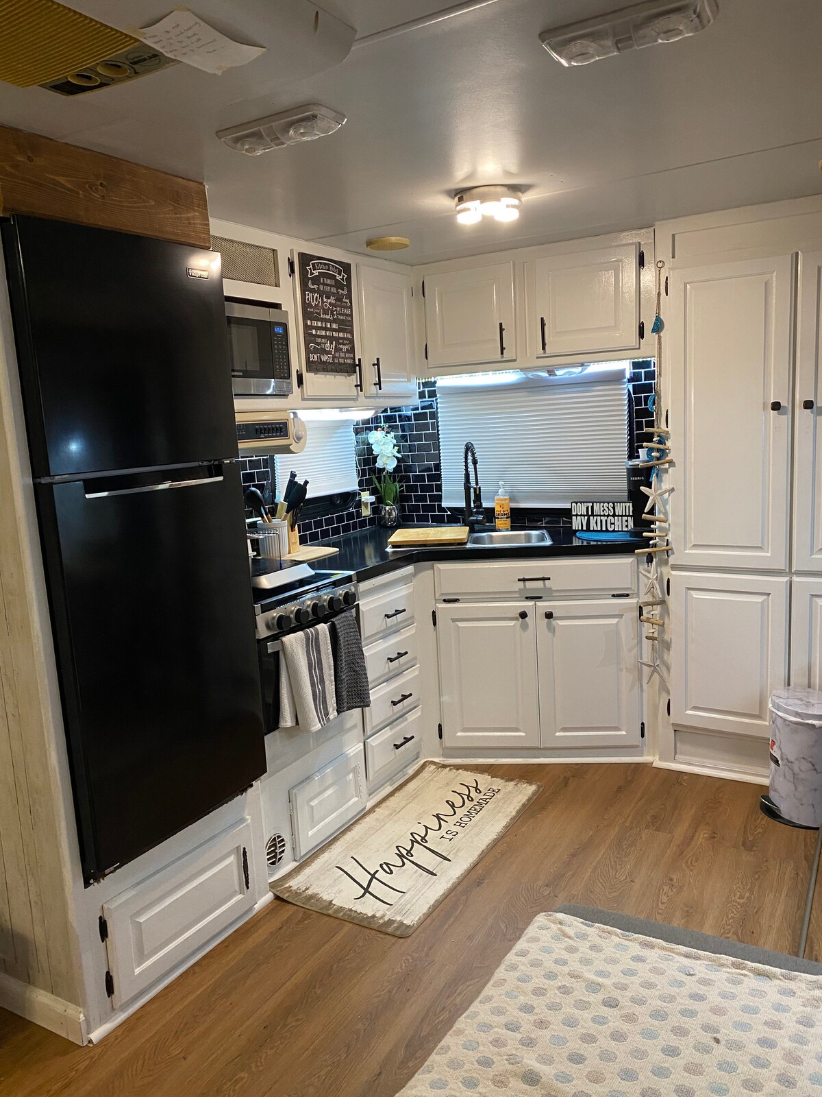 Het is een trailer met queensize bed, keuken en badkamer . Toilet en Douche bevinden zich in een aparte privéruimte. Het is een plek die perfect geschikt is om uit te rusten. Verwacht wat hond te horen blaffen wanneer ze even naar buiten gaan. Ze zijn binnen honden en klein, maar wees niet verbaasd als je ze hoort. Het is een gerenoveerd ouder vijfde wielmodel, dus verwacht niet dat alles nieuw is. Ik ben niet verantwoordelijk voor eventueel verloren voorwerpen. Geen huisdieren, als de gast een huisdier meeneemt, wordt er een extra $ 150 voet toegevoegd.