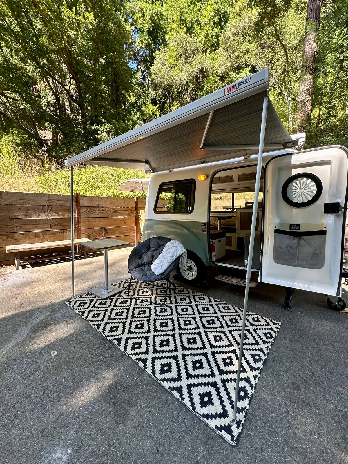 Onze charmante camper ligt in het schilderachtige Los Gatos en biedt de perfecte mix van comfort en avontuur. Binnen vind je een rustgevend queensize bed voor een goede nachtrust en een gezellige ruimte om tot rust te komen. Verken prachtige paden en fietsen, of gewoon genieten van de rustige omgeving. Populaire attracties zoals de Santa Cruz Beach Boardwalk en de Mystery Spot liggen op slechts een klein stukje rijden. Voor jouw comfort bieden wij optionele add-ons zoals een binnendouche ($ 20 met een handdoek) en wasfaciliteiten ($ 10).