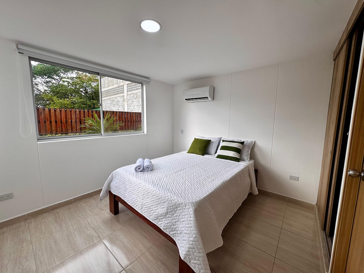 Voorzieningen van het appartement: - 4 comfortabele bedden: een queensize bed, 1 hut met 1 basisbed - Airconditioning in de hoofdslaapkamer en woonkamer - Kingsize slaapbank. - Gigantische tv in de woonkamer - zwembad met glijbaan - Gratis parkeren -Volledig ingerichte keuken - Lift Gelegen op 5 minuten van het historische hoofdpark in Santa Fe de Antioquia, een pittoresk koloniaal dorp dat opvalt door zijn kleurrijke architectuur en geplaveide straten. Een must-visit plan voor gezinnen dus!