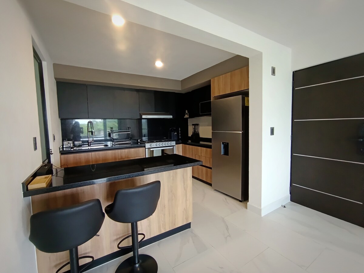 Disfruta de increíbles días en familia en casa tipo loft industrial amueblado, dentro de fraccionamiento ubicada en Xochitepec, Morelos. Cuenta con: • 2 recamaras, cada una con cama matrimonial, además una de las habitaciones cuenta con sofá cama • Sala-comedor, televisión • Cocina equipada con lo necesario • Jardín con asador • Alberca privada • Mosquiteros, ventiladores de techo y aire acondicionado • Estacionamiento • Vigilancia las 24 hrs • Internet La zona es tranquila, de fácil acceso