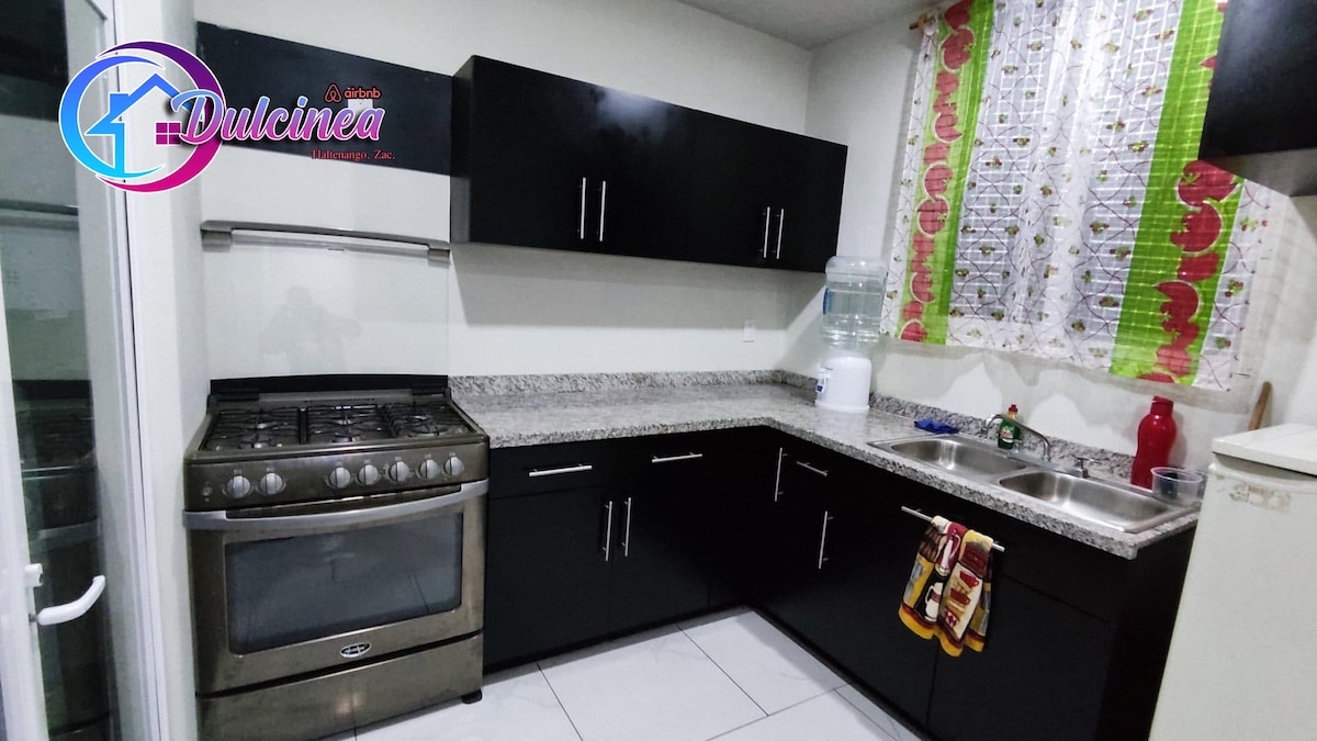 Onze plek is zeker de beste optie voor je verblijf in de stad Tlaltenango, Zacatecas, ons huis zal je het gevoel geven dat het van jezelf is, allemaal in een 100% familiale omgeving. Wij bieden u: 3 SLAAPKAMERS (twee met airconditioning, koud warm) 2 BADKAMERS KEUKEN SERVICE PATIO GARAGE WOONKAMER Ideaal voor een stel of voor een gezin van 6. Wifi, display met streamingplatforms, warm water en een uitgeruste keuken. UITSTEKENDE locatie op 5 minuten van het centrum.