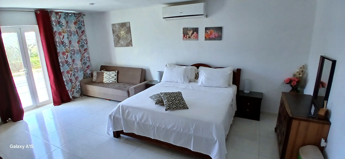 Experience Curaçao in this budget-friendly studio perfect for solo travelers or couples. The space includes a comfortable bed, kitchen, fridge,Smart TV and all the essentials for your long or short term stay Beaches, local markets, and island attractions are all within reach. If renting a car to explore the island isn’t an Option for you, there’s a bus station just a 5-minute walk away, offering easy access to Willemstad and the Otrobanda Central Bus Station. Video with route guidance available