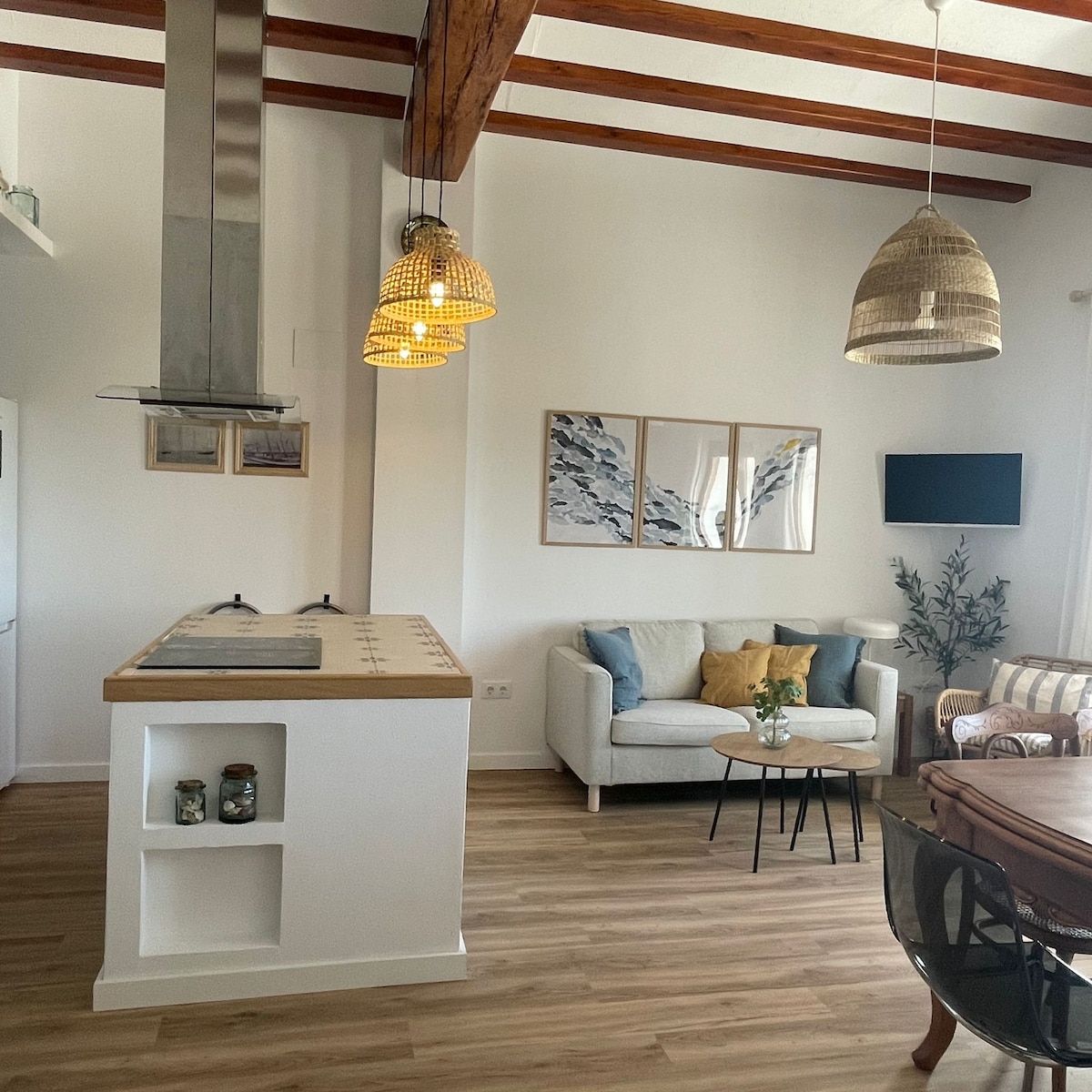 Bienvenidos a Nuria’s art loft, un precioso apartamento muy luminoso y recién reformado, en una calle muy tranquila del casco antiguo de Jávea donde disfrutar de paseos por su peculiar entramado de calles estrechas, fachadas blancas, ventanas góticas y piedra de Tosca. Un lugar ideal para encontrar multitud de restaurantes, comercios, mercado de Abastos, Museos…. El apartamento se encuentra a 1,5km del Puerto y de la playa de la Grava, a 2km de la playa del Montañar y a 3km del Arenal.