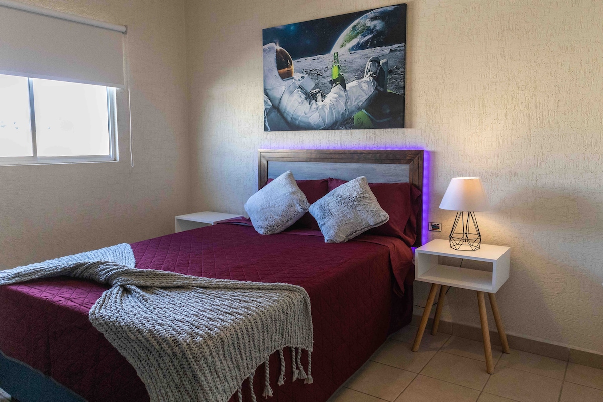 De magie van ons appartement op Airbnb. Gelegen in Juriquilla, biedt het een onovertroffen locatie, met veel veiligheid. Het gezellige ontwerp combineert comfort en stijl en creëert een perfecte omgeving om te ontspannen. Met voorzieningen zoals een volledig uitgeruste keuken, snelle wifi en 2 werkplekken is elk detail ontworpen om je verblijf onvergetelijk te maken. Ik ben er ook om je lokale aanbevelingen te doen en ervoor te zorgen dat je optimaal geniet van je bezoek. We kijken ernaar uit om je te zien!