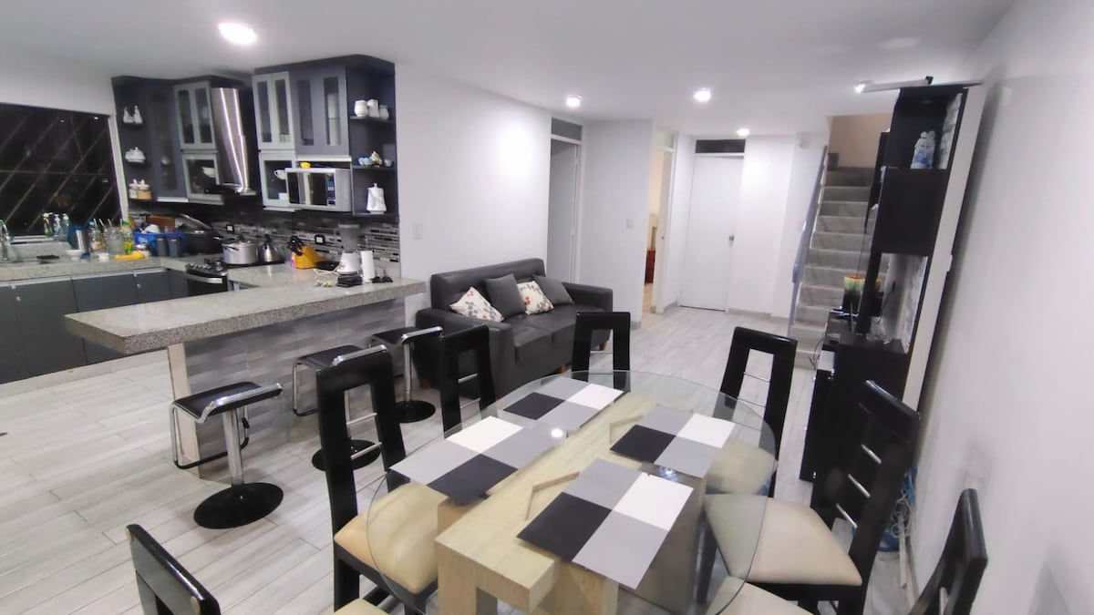 Geniet van een modern en volledig uitgerust appartement. Ideaal voor een uitje voor koppels of rustreizen. 🥇Superhost. ✈️ Favorieten van gasten. 🛌 1 slaapkamer met een queensize bed. 🍳Kompleet ingerichte keuken. Eigen 🛀🚿badkamer met warm water. Gezellige 🛋️ woonkamer/eetkamer 🐶 Huisdiervriendelijk. 📺 Netflix 📍Locatie: Calle Jirón Loreto blok 6 - Ancón.
