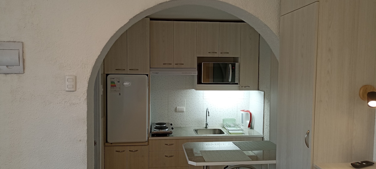 Es un mini departamento de 15 m2 volledig onafhankelijk van de ingang van de privéruimtes met magnetron koelkast vaatwasser servies, service waterkoker 1 kleine eettafel met 2 stoelen Smart-tv en internet eigen badkamer met douche en-suite warm water (in het appartement) naast een 2-persoons bedkast alles sluiten om uw verblijf zeer aangenaam rustig terras te maken
