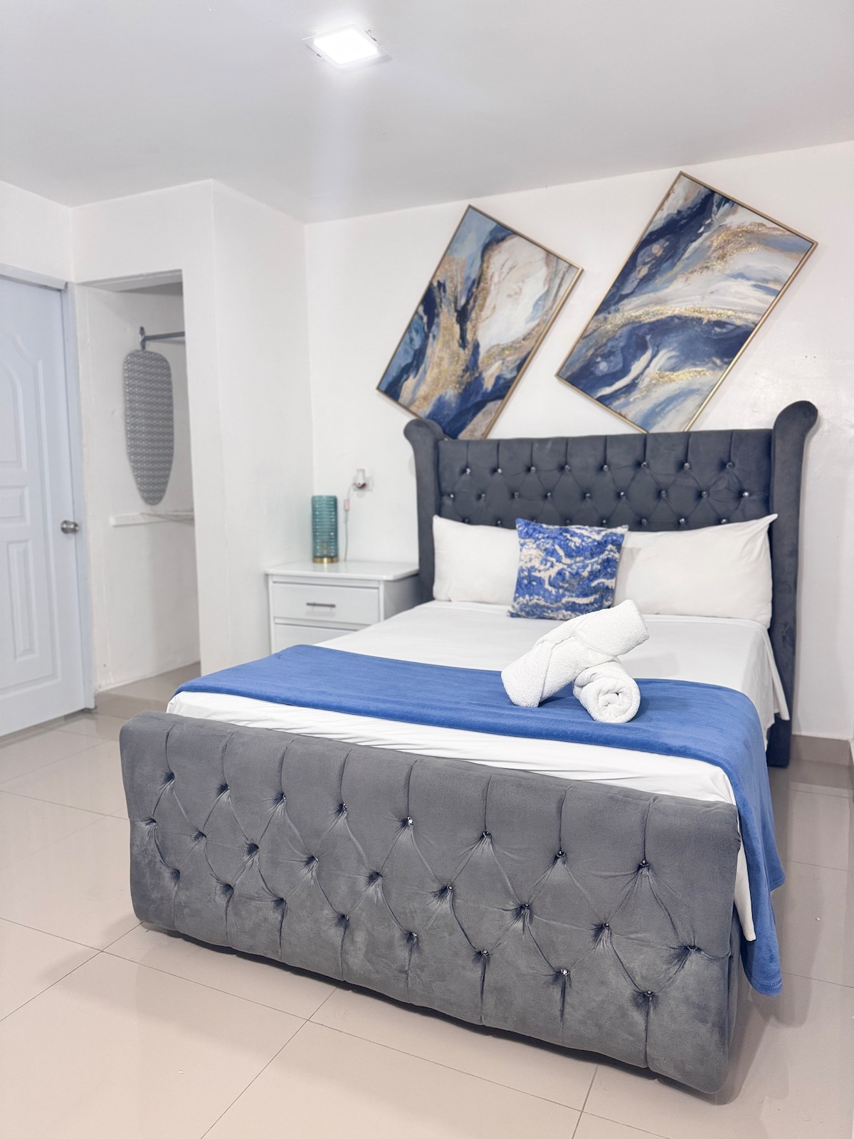 Disfruta de tu estadia en un ambiente relajante y cómodo, es ideal para pareja. Ubicado en un 3er piso de un residencial super seguro. (No ascensor) Cuenta con 1 habitación disponible. Aire acondicionado y abanico. Hay 2 habitaciones sin habilitar. También tendrás a tu disposición agua caliente, internet, cocina equipada con nevera, estufa, microondas, tostadora, greca, y los utensilios y vajillas necesarios para pasar una acogedora estadía. PD: Favor tener cuidado con no dejar caer la ducha.