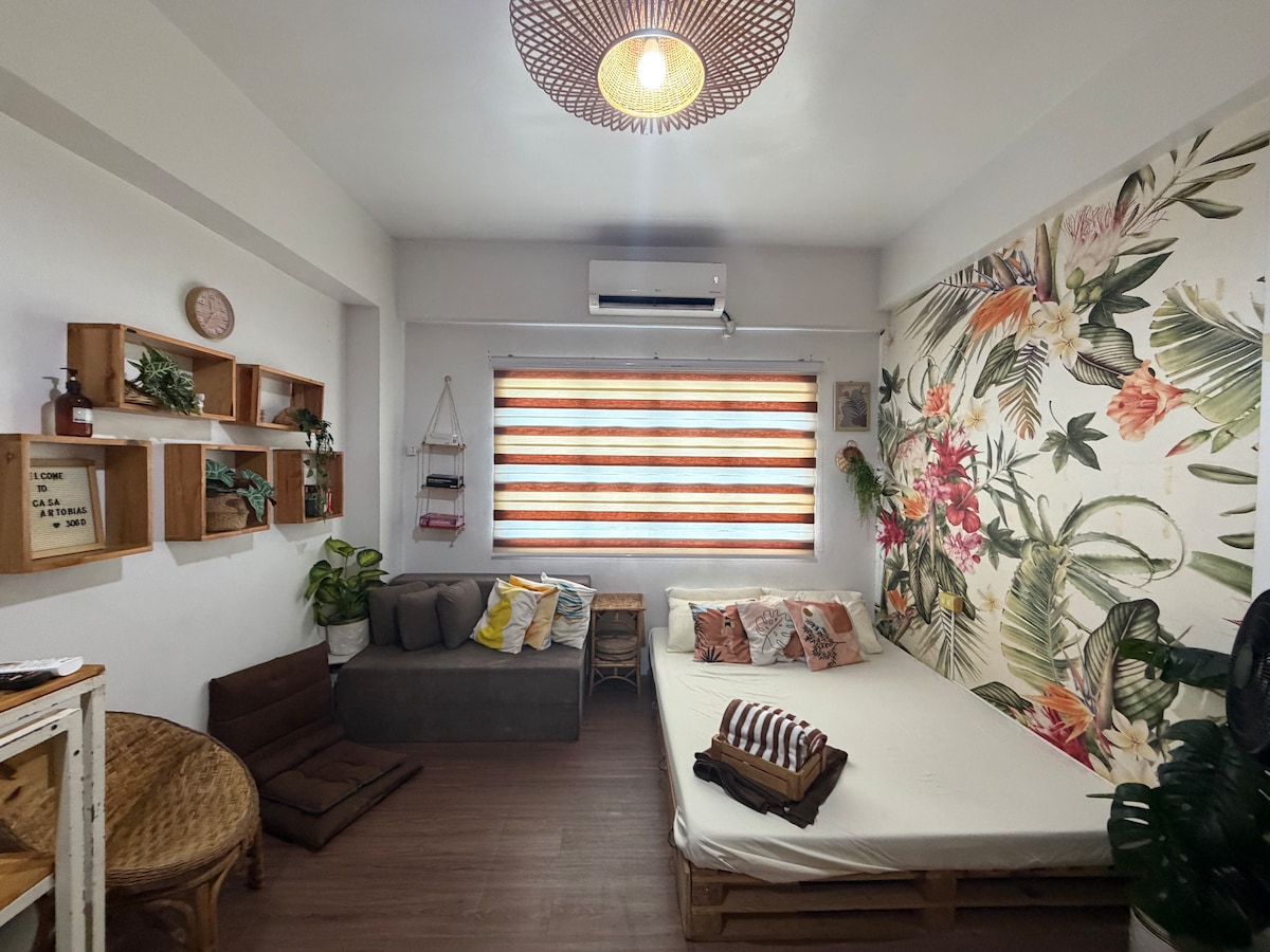 Gelegen op de 3e verdieping van een appartementengebouw, geniet van je verblijf hier met je vrienden en dineer je buiten de patio! Wat we hebben: - AC - Onbeperkt WIFI - De hele nacht kijken omdat we NETFLIX HEBBEN - Keuken met enkele inductiekookplaat + compleet keukengerei - Koelkast Wat we niet hebben: - Warmwaterverwarmer - Projector (degene op de foto) is eigendom van de vorige huurder - Parkeerplaats (maar er is beperkte parkeergelegenheid op straat voor motoren)