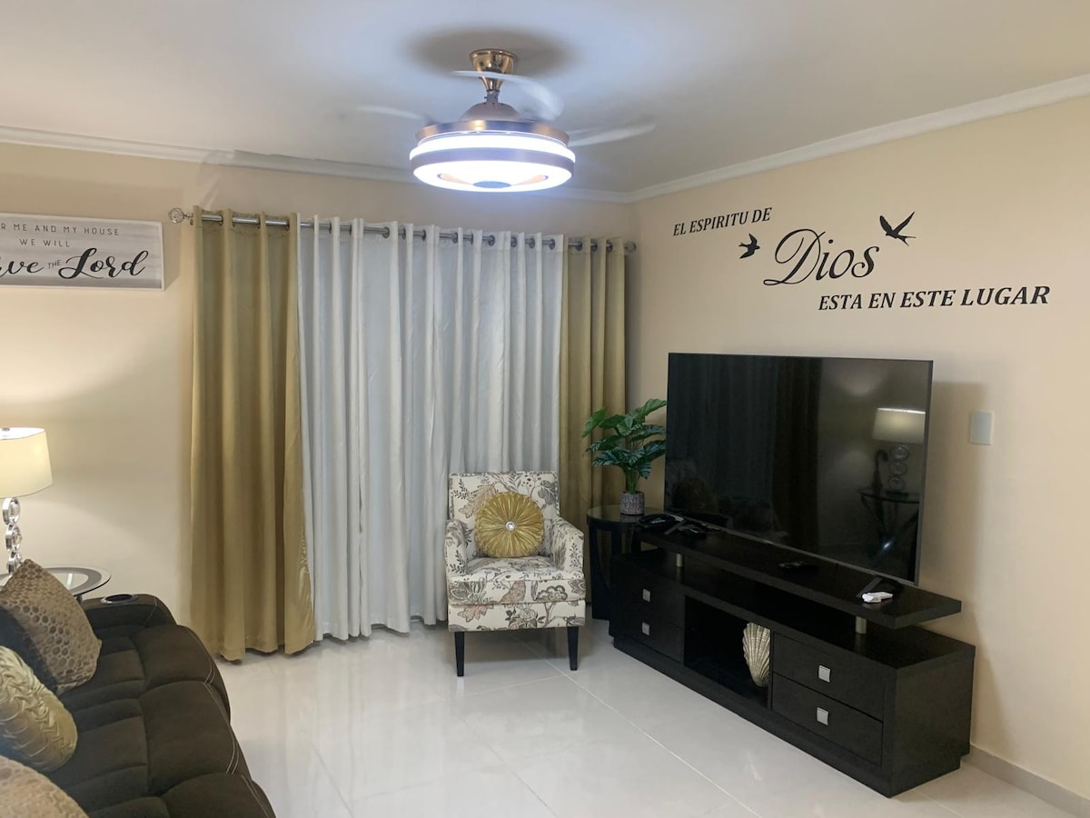 Plezier met het hele gezin in dit nieuwe appartement met stijl en 24-uurs beveiliging, gelegen in Jacobo Majluta, in het wooncomplex Ita Esther II, winkelcentrum in de omgeving, Banken, foodtrucks, fitnessruimte, restaurants, apotheken, botanische tuin en 8 minuten van het Amerikaanse consulaat.