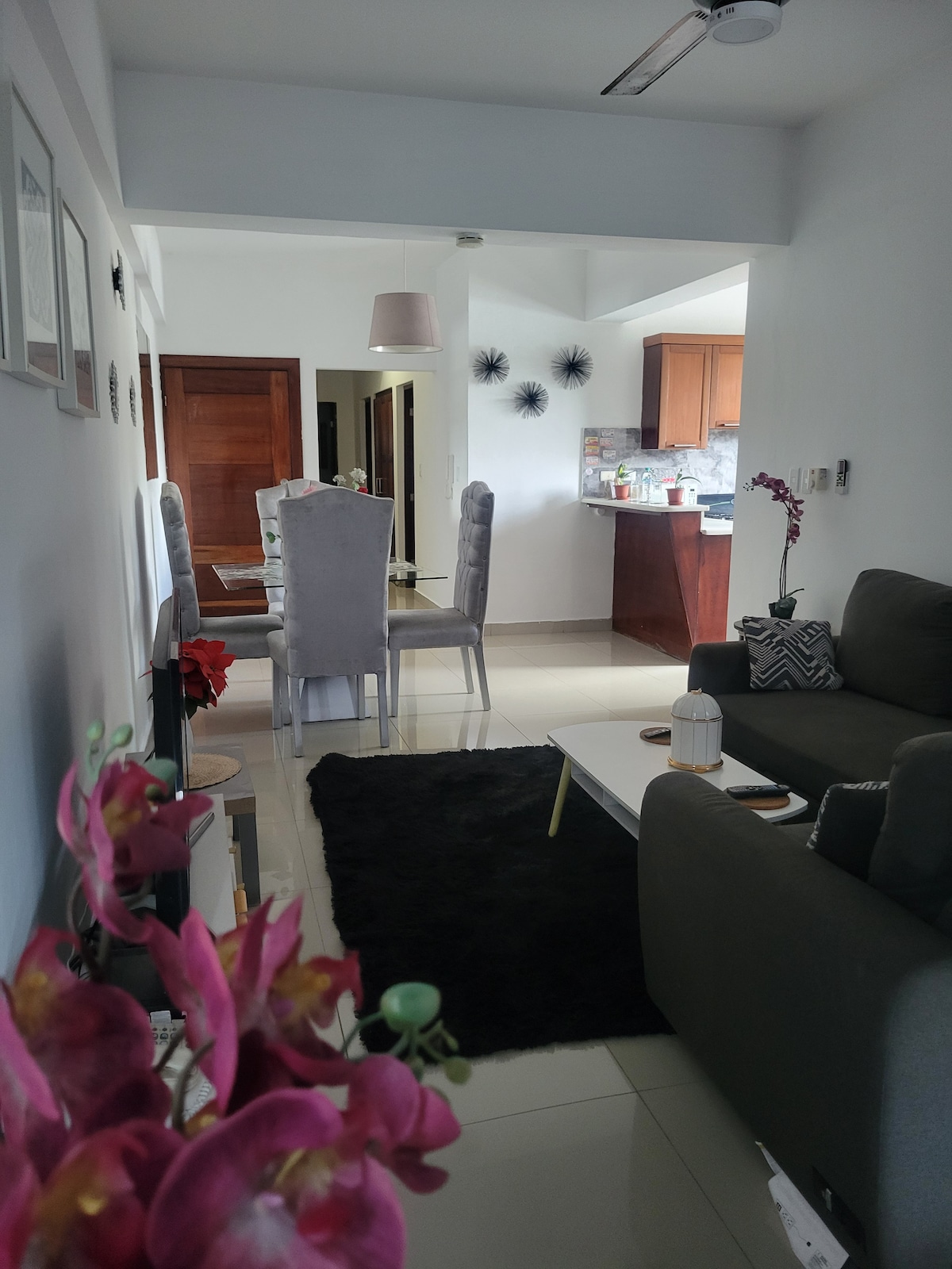 El apartamento es muy elegante y tiene una increíble. Vista al mar. Cerca de casa España y supermercados AC. habitacione cómoda con cama matrimoniale super comodas , balcón amplio con vista al mar tiene parqueo cocina , 1.5 baños tv smart plasma wifi, servicio de neflix muebles cómodo en la sala puedes hacer uso de la cocina. intercom entre otros