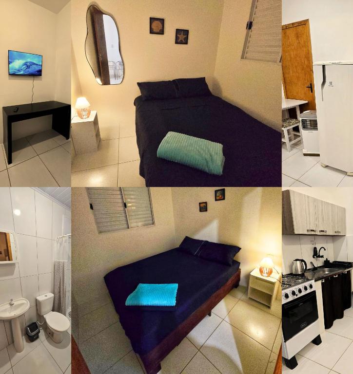 O imóvel conta com 1 quarto com ar-condicionado, equipado com 1 cama de casal e 1 cama de solteiro com cama auxiliar. Na sala, há sofá-cama e televisão, integradas à cozinha em ambiente conjugado. Possui 1 banheiro privativo e estacionamento disponível. O condomínio oferece área de lazer com piscina e churrasqueira. A localização é excelente e central: a apenas 50 metros de mercado, próximo a farmácia, pizzaria, hospital e lancheria. Estamos prontos para receber você!